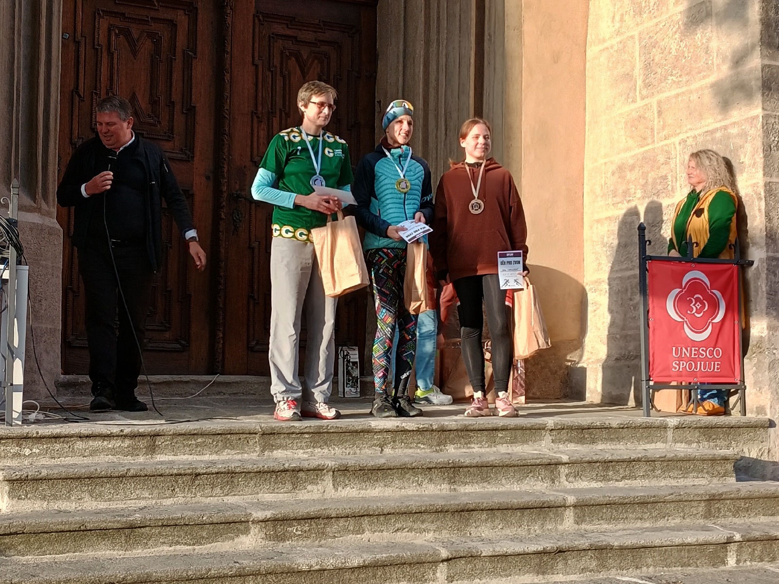 Velké ocenění patří sextě, která se se svým třídním učitelem Michalem Kopáčkem zúčastnila v nejhojnějším počtu. Děkujeme za podporu studentským fanouškům i kolegům, kteří nás navigovali a povzbuzovali na trati. Klobouk patří smeknout před výkony Jitky Rybenské a Sáry Cibulkové, které se umístily na 2. a 3. místě závodu žen na 3,5 km. Atletická mimoškolní dlouhodobá příprava dělá své, a proto: dámy - gratulujeme!