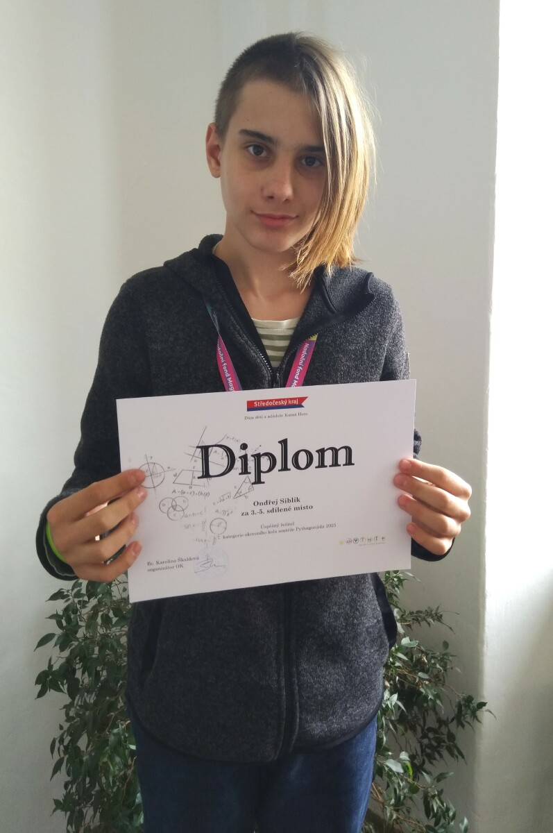 Do okresního kola, které se konalo v Čáslavi, postoupili v letošním školním roce všichni úspěšní řešitelé kola školního. V okresním kole si nejlépe vedli Eva Knappová z primy a Ondřej Siblík ze sekundy, kteří obsadili velmi pěkné 3. místo. Úspěšným řešitelem okresního kola (mimo stupně vítězů) se stal Alex Holý z tercie. Pythagoriáda je matematická soutěž pořádaná pro druhý stupeň ZŠ a příslušné ročníky víceletých gymnázií.