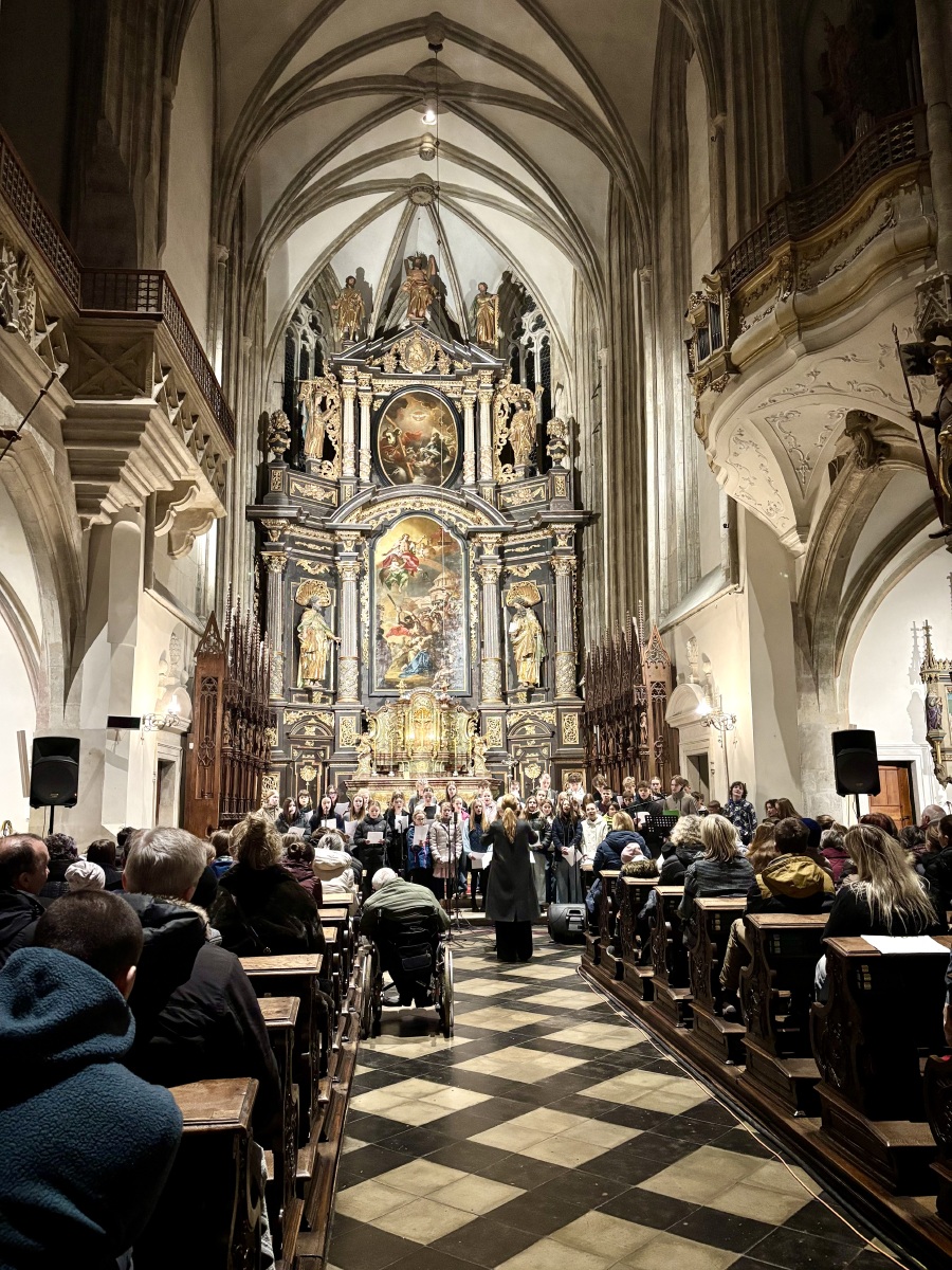 Před zaplněným kostelem svatého Jakuba vystoupili v podvečer 9. prosince studenti i učitelé, aby zpříjemnili čas adventu a předali radost z nadcházejících vánočních svátků. Zazněly písně v tradiční i jazzové úpravě, sólový zpěv i třídní sbory, milým vybočením z obvyklosti byla taneční variace na varhanní skladbu. Velký dík patří všem, kteří připravovali program celý podzim, protože díky nim se koncert nesl v nádherné atmosféře sounáležitosti.