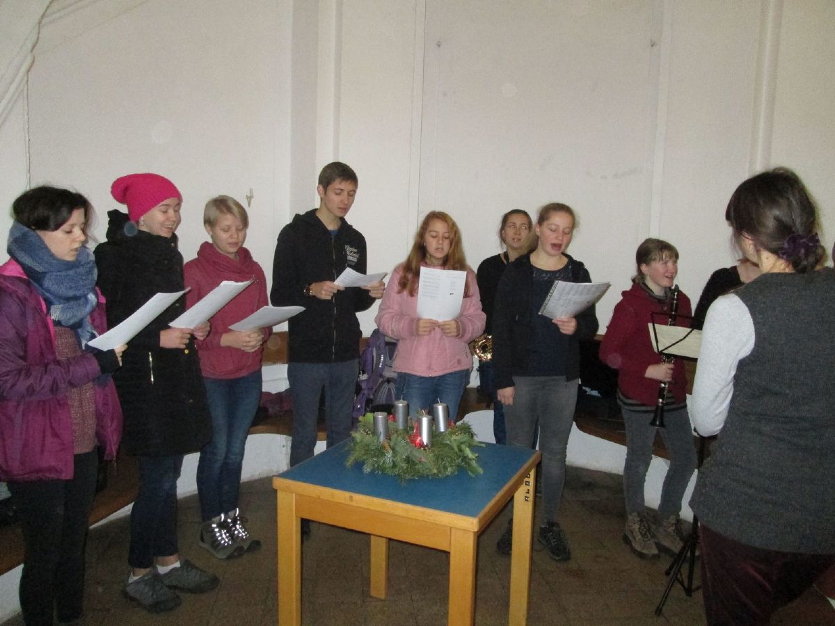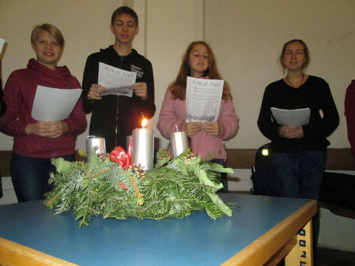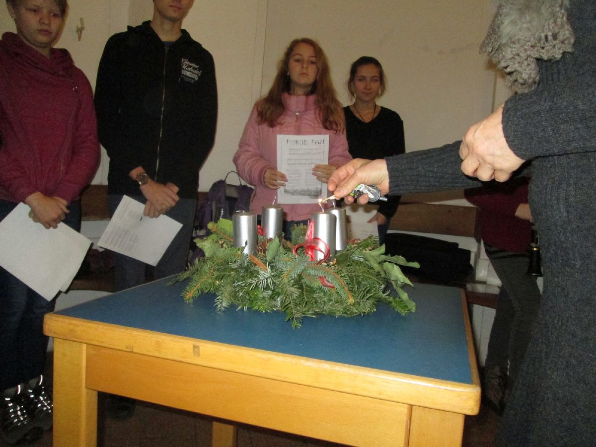 První svíci rozsvítila ředitelka školy Stanislava Lisková během zahájení adventu a požehnání věnce, jež vedl spirituál školy Pavel Tobek. Slavnostní atmosféru podpořil hudebním doprovodem sbor Schola.