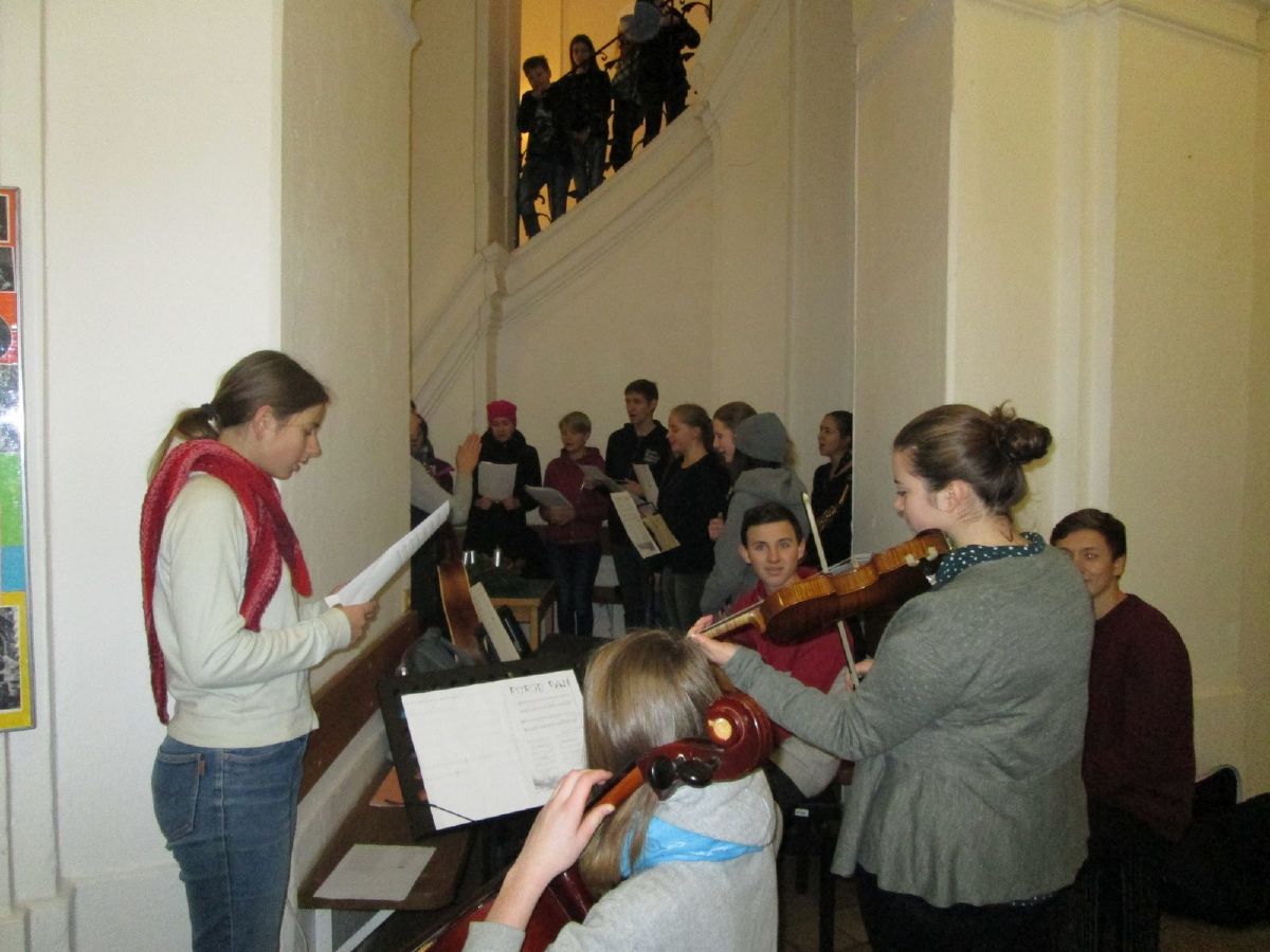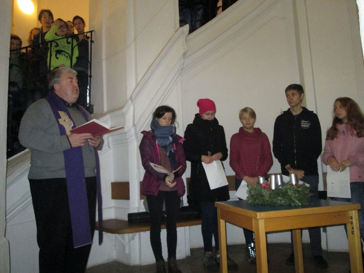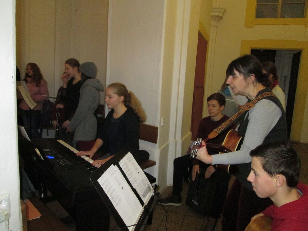 První svíci rozsvítila ředitelka školy Stanislava Lisková během zahájení adventu a požehnání věnce, jež vedl spirituál školy Pavel Tobek. Slavnostní atmosféru podpořil hudebním doprovodem sbor Schola.