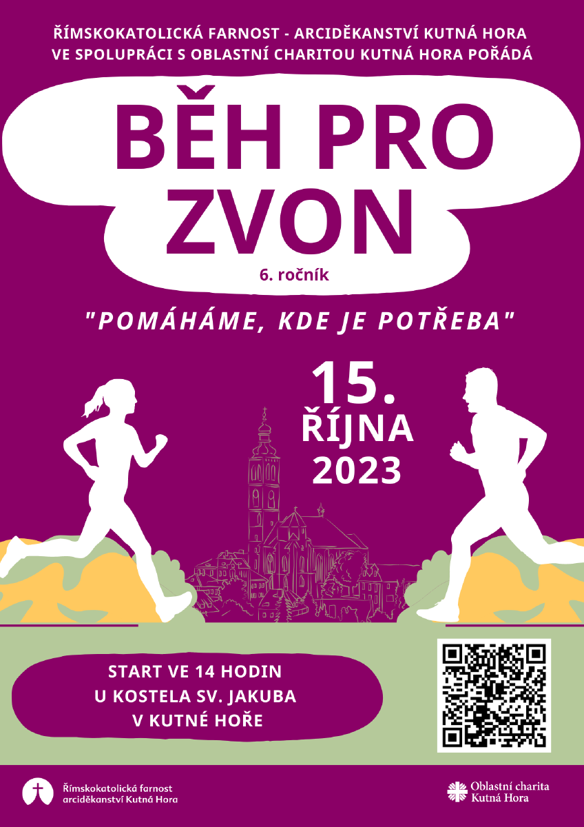 V soboru 15. 10. 2023 se opět uskuteční akce Běh pro zvon. Atletické nadšence a závodníky, ale i příležitostné běžce zve kutnohorská farnost ke klání od 14:00 hodin pod lípou vedle kostela sv. Jakuba. Více informací v příloze.