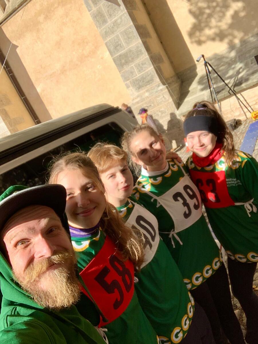 Velké ocenění patří sextě, která se se svým třídním učitelem Michalem Kopáčkem zúčastnila v nejhojnějším počtu. Děkujeme za podporu studentským fanouškům i kolegům, kteří nás navigovali a povzbuzovali na trati. Klobouk patří smeknout před výkony Jitky Rybenské a Sáry Cibulkové, které se umístily na 2. a 3. místě závodu žen na 3,5 km. Atletická mimoškolní dlouhodobá příprava dělá své, a proto: dámy - gratulujeme!