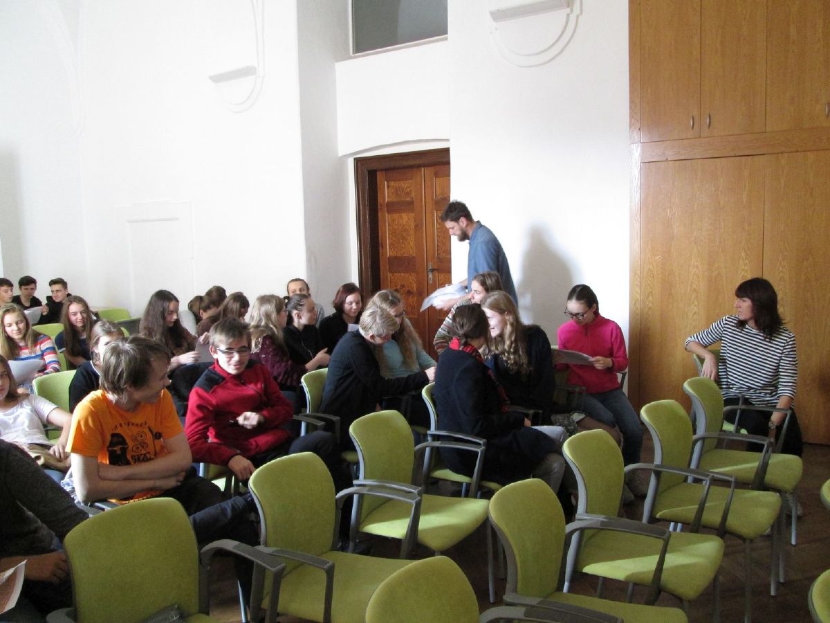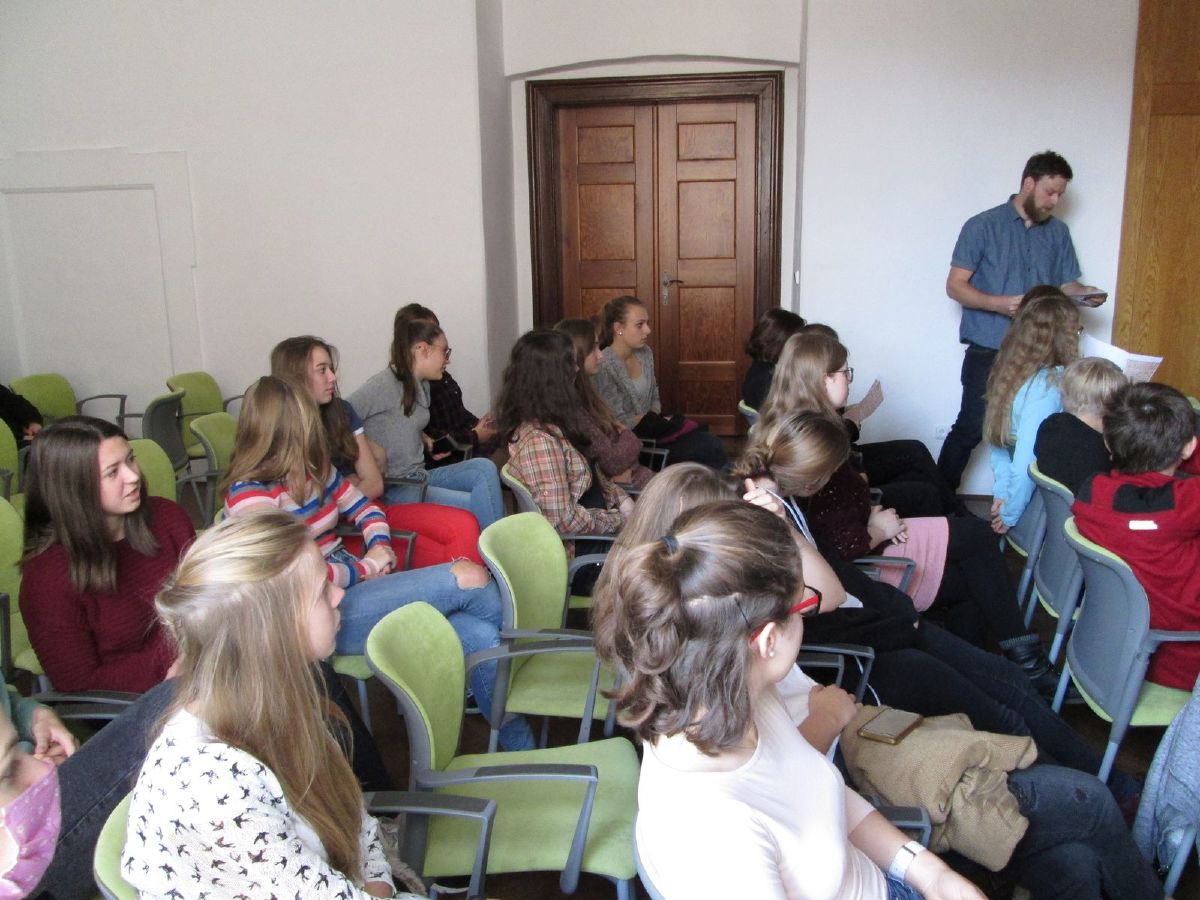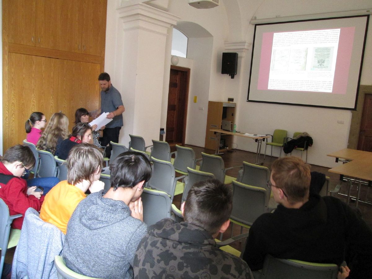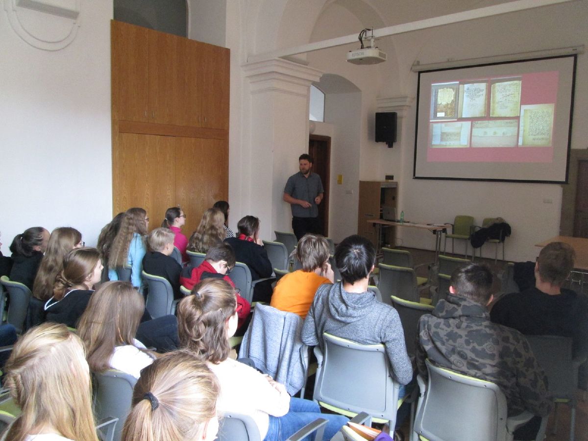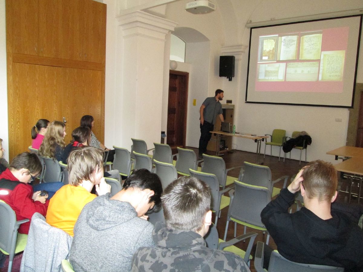 Období počátku Českého stavovského povstání se zaměřením na bitvu u Čáslavi, ke které došlo od 14. do 16. září 1618, přiblížil 2. listopadu studentům kvinty a sexty Mgr. Filip Velímský, kutnohorský archeolog a starosta spolku Včela čáslavská. V roce osmičkových výročí jsme tentokrát cestovali trochu hlouběji v čase a věnovali se politické situaci a vojenské taktice v předvečer Třicetileté války. V souvislosti s tématem gymnázium předcházející dva týdny hostilo výstavu o již zmíněné bitvě, kterou si měli studenti možnost prohlédnout na chodbě v prvním patře.