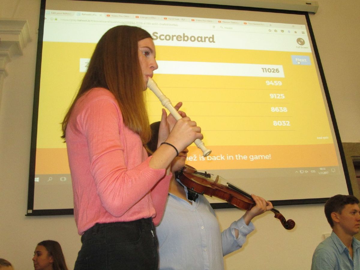 Dvouhodinový program složený z interaktivní hudební soutěže, kouzelnického představení, parodického videa, recitace a zpěvu připravila septima. S největším ohlasem se setkala talk show "Pokec s učiteli", v níž byli učitelé představeni z jiného úhlu pohledu, než je studenti znají. Letošní šestý ročník Dne pro oktávu jako každoročně finančně podpoří maturitní ples.