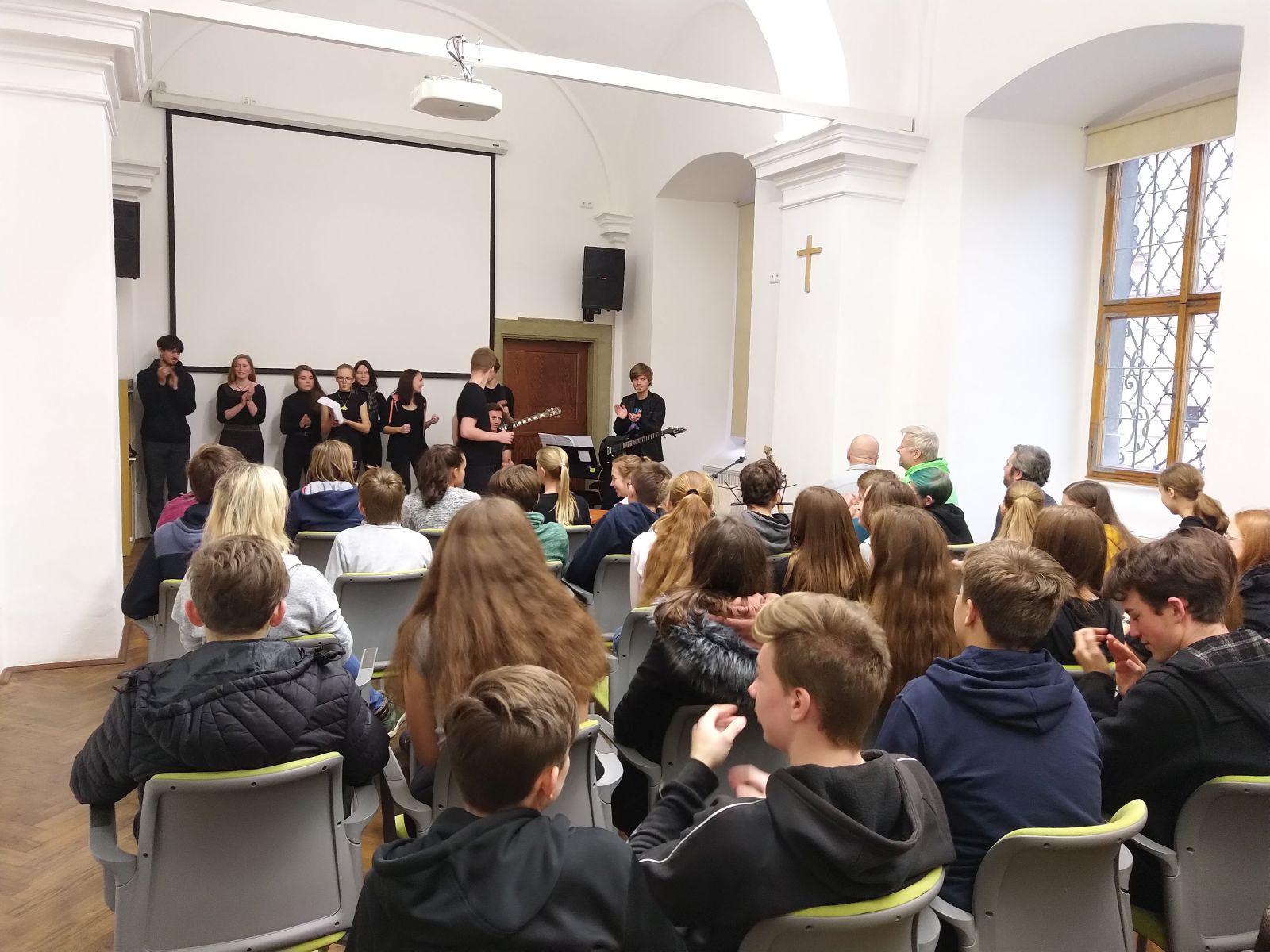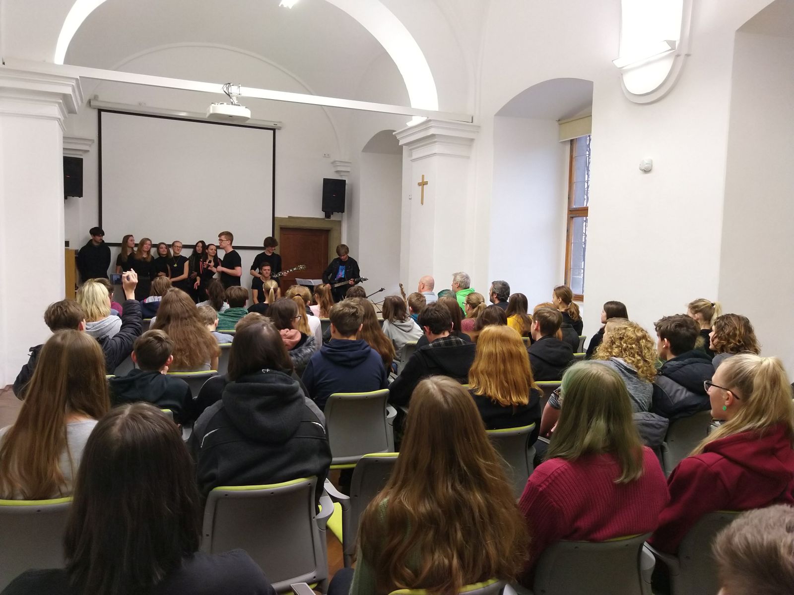 Více než hodinový benefiční program plný pěveckých, recitačních i tanečních vystoupení, videí a rozhovorů s osobnostmi školy připravili septimáni pro své spolužáky. Pomáhají tak oktávě při organizaci maturitního plesu, který bude 8. února 2020 v Lorci.