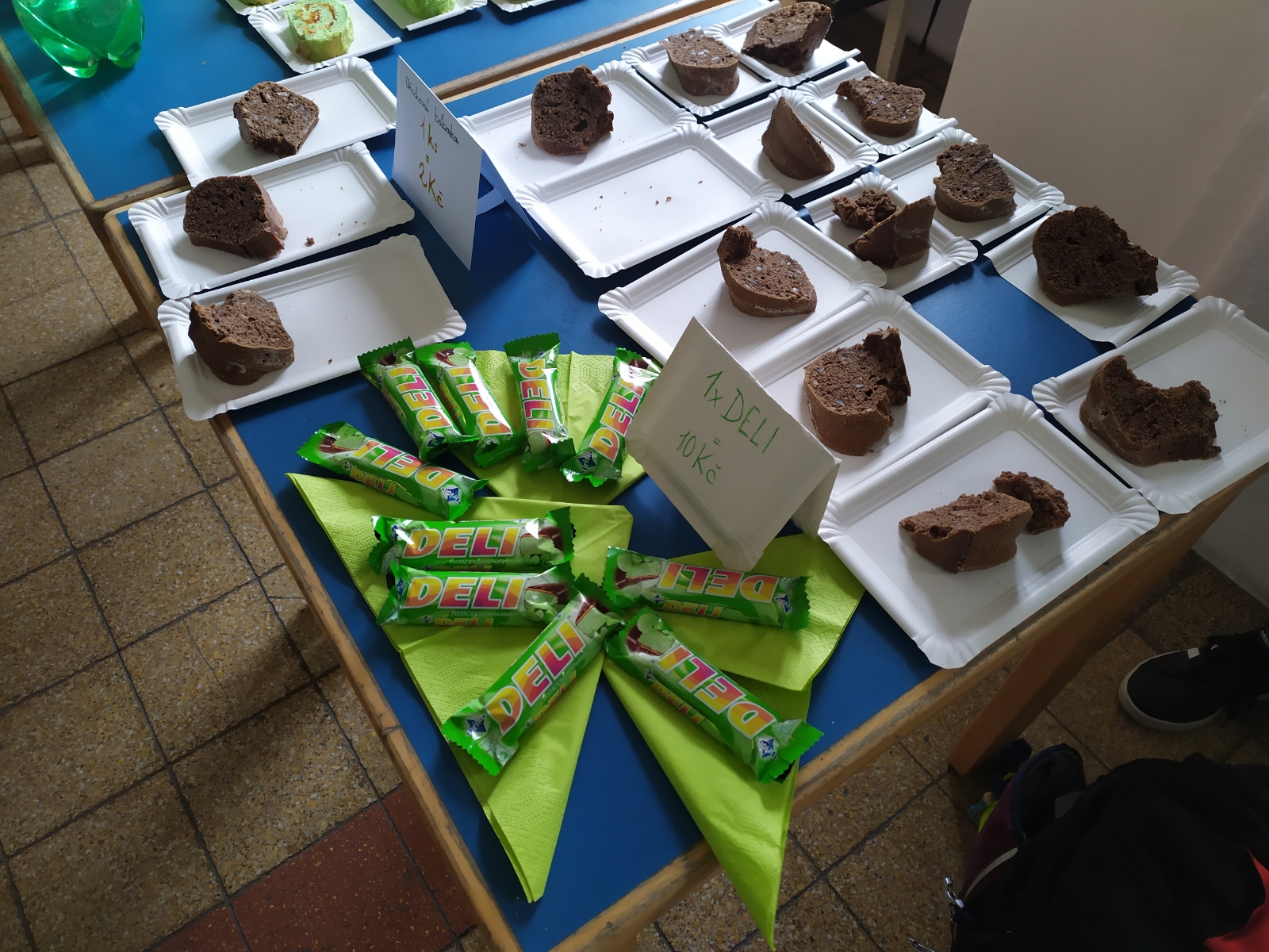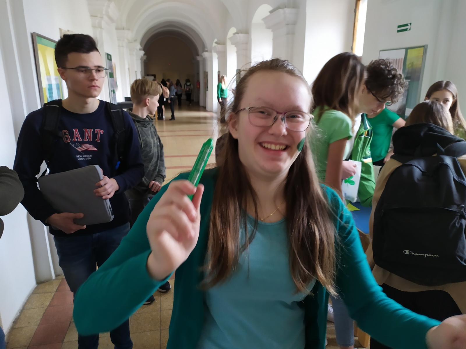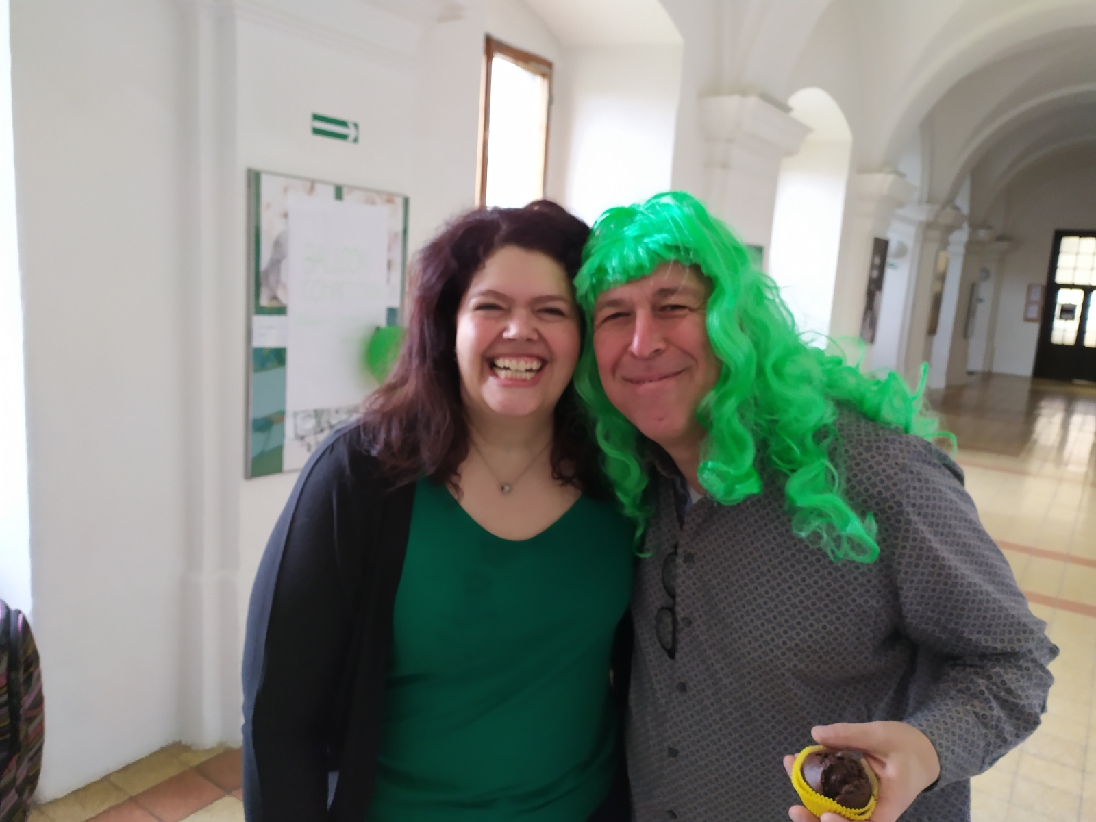 Během první vyučovací hodiny ve čtvrtek chodili někteří terciáni po třídách a říkali ostatním studentům, proč se tento svátek slaví a co jsme si pro ně připravili. Napekli jsme nějaké zelené dobroty a připravili nějaké pití. Také jsme malovali na obličej a prodávali štěstíčka. Původně jsme měli v plánu prodávat první a druhou přestávku, ale téměř vše se vyprodalo hned první přestávku. Tu druhou byla soutěž v nafukování balónků. Výherkyni jsme předali dárkovou tašku se zelenou výhrou.