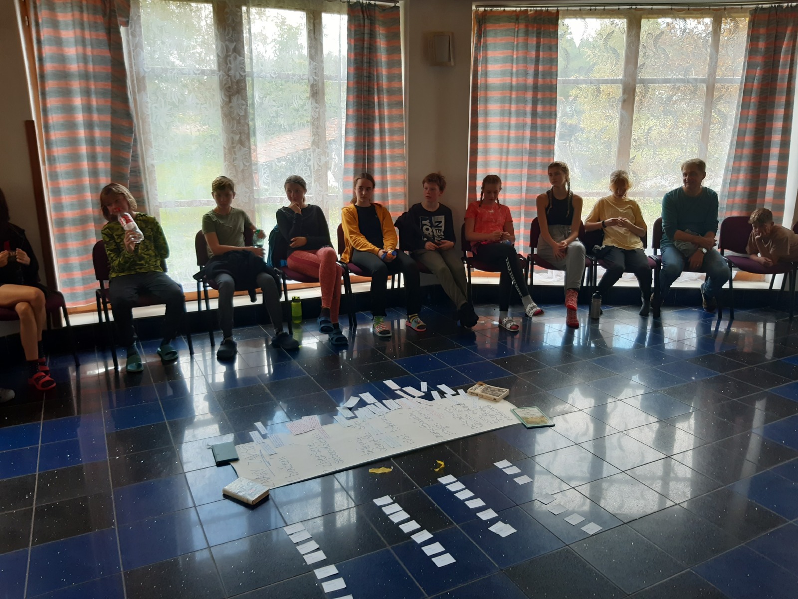 ...hráli hry, společně diskutovali, získávali nové informace atd. Po celý čas je kromě pedagogů provázely tři asistentky ze sexty, aby pomohly nejen dospělým, ale hlavně studentům, se zvládnutím náročných aktivit. Díky rozmanitým zážitkům se mezi spolužáky upevnily vzájemné vztahy.