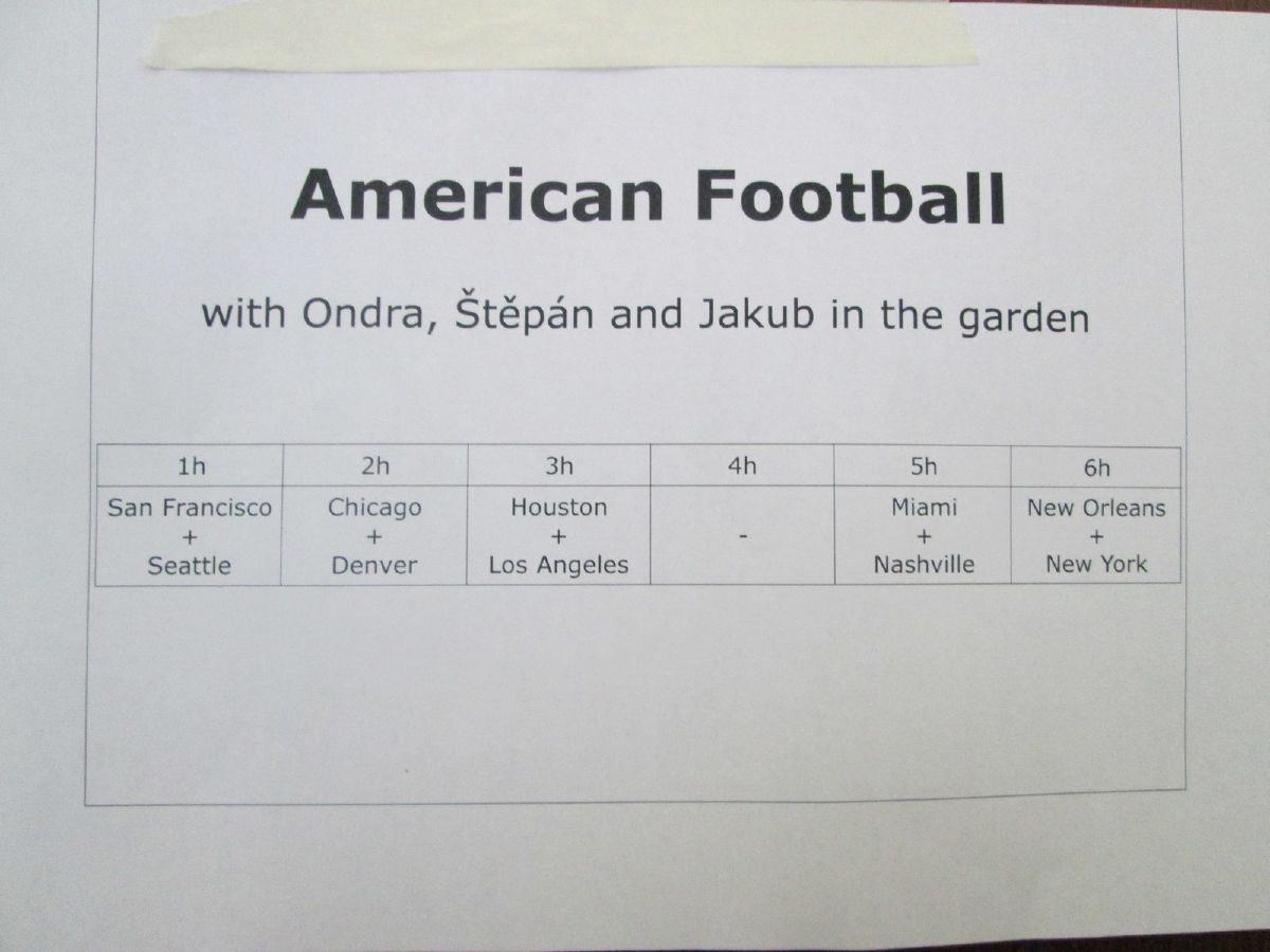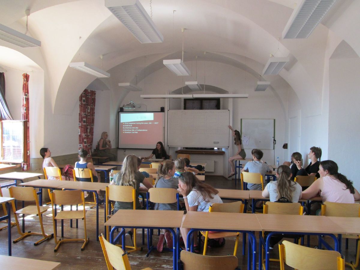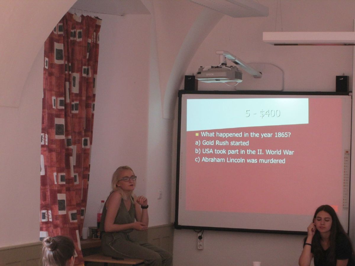 Americká asistentka ve výuce Sinia Amanonce informovala o programu Work and Travel a dvě studentky sexty, Jana Havrdová a Kristýna Pazderová, se podělily o své zkušenosti z pobytu v USA a Velké Británii. Klášterní zahrada se na několik hodin proměnila v hřiště na americký fotbal a v průběhu velké přestávky se stala místem soutěže v házení na basketbalový koš či v pojídání Tex-Mex chilli. V aule probíhal taneční workshop. Nechyběla ani klasická forma americké vědomostní soutěže Jeopardy, kterou na základě informačních plakátů připravili studenti sexty.