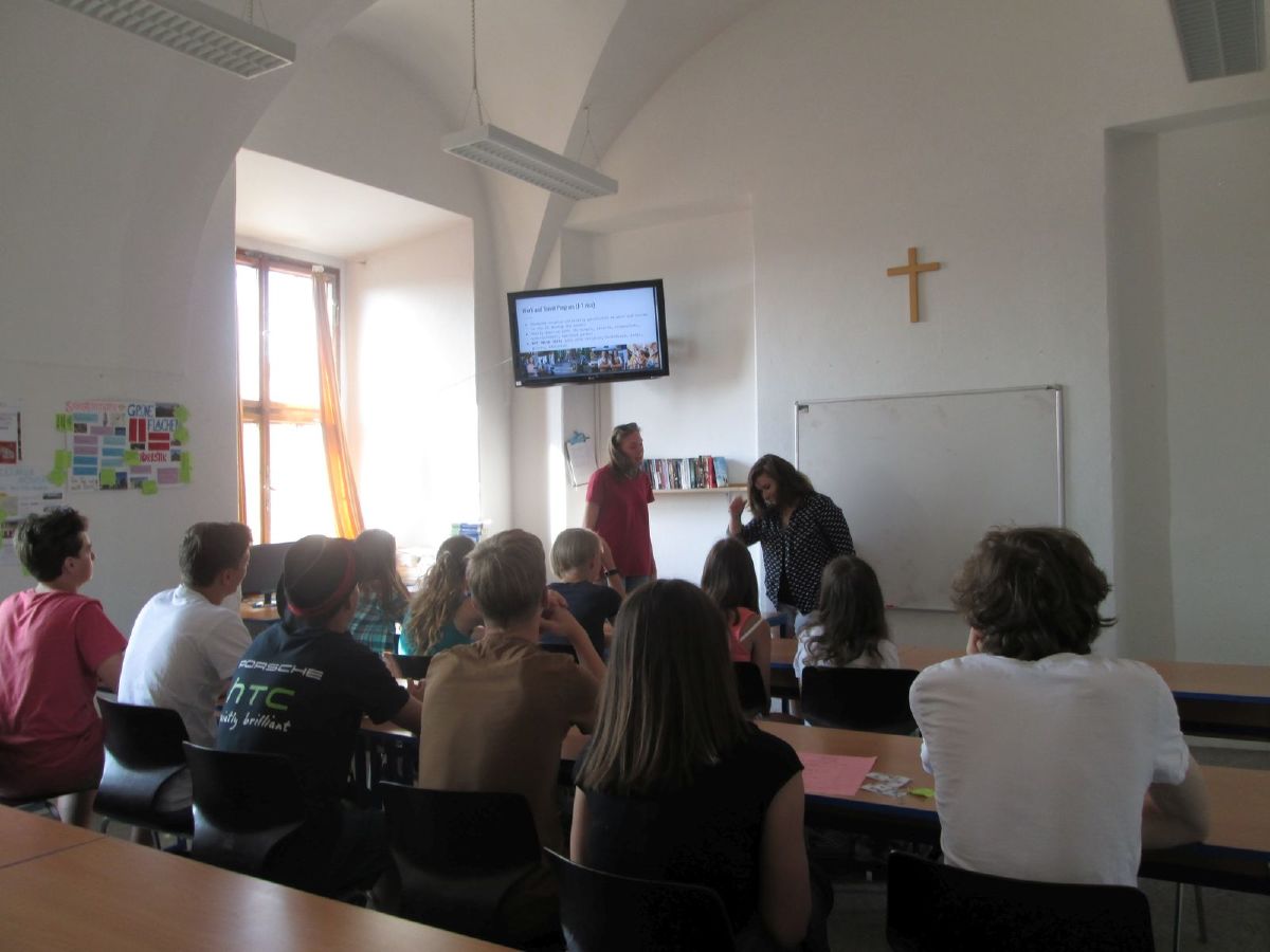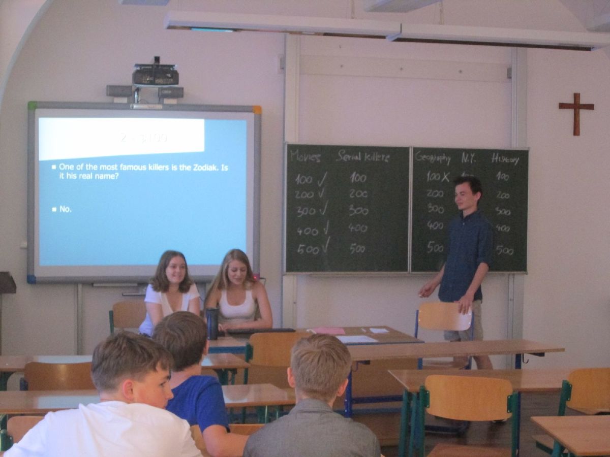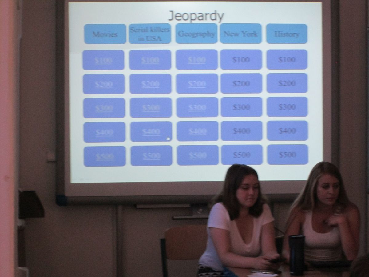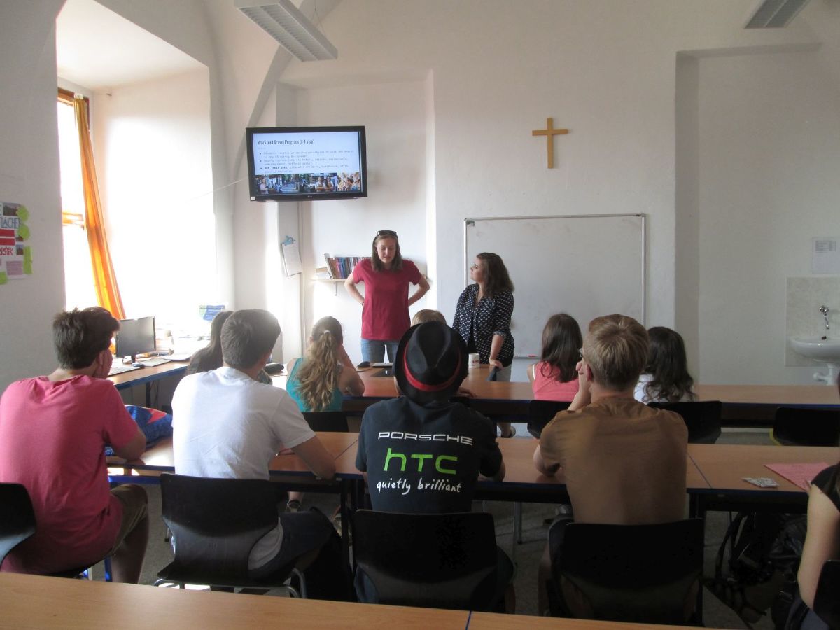 Americká asistentka ve výuce Sinia Amanonce informovala o programu Work and Travel a dvě studentky sexty, Jana Havrdová a Kristýna Pazderová, se podělily o své zkušenosti z pobytu v USA a Velké Británii. Klášterní zahrada se na několik hodin proměnila v hřiště na americký fotbal a v průběhu velké přestávky se stala místem soutěže v házení na basketbalový koš či v pojídání Tex-Mex chilli. V aule probíhal taneční workshop. Nechyběla ani klasická forma americké vědomostní soutěže Jeopardy, kterou na základě informačních plakátů připravili studenti sexty.