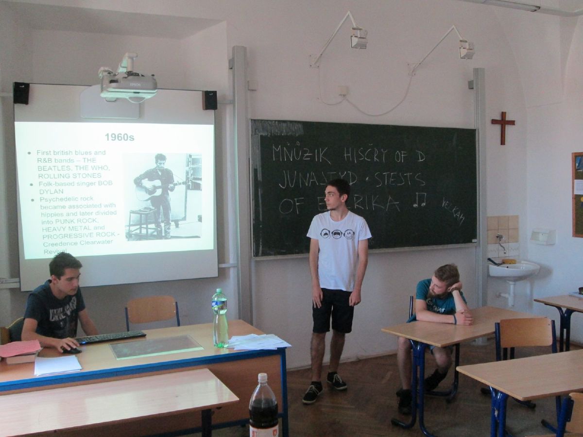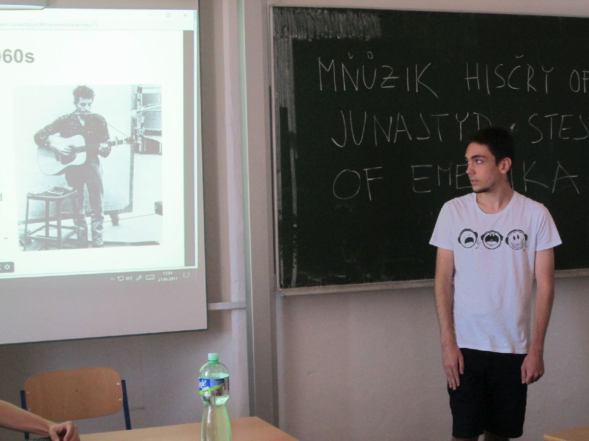 Tradičně na závěr školního roku se uskutečnil projekt Anglický den. Tentokrát byly tematickým pojítkem všech aktivit Spojené státy americké. Studenti septimy si připravili prezentace o geografii, historii objevování vesmíru a americké populární hudbě.