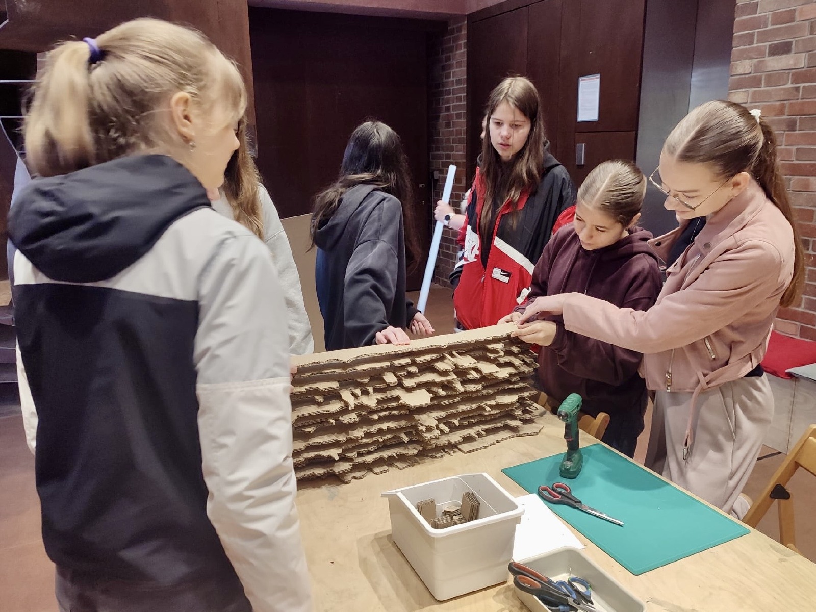 Terciáni se vydali do pardubického komplexu galerií a vzdělávacího centra Automatické mlýny. Seznámili se s proměnou mlýnů na galerii, prohlédli si zajímavá místa a zbytky mlýnského zařízení - elektromotory, soustavy převodů, třídící přesýpací stroj a další. Prohlídku výstavy Lekce krajinou zakončili nádherným výhledem na město Pardubice z terasy galerie. V druhé části workshopu výhled na město zpracovali výtvarně v prostorové práci s horizontem. Exkurze obohatila vnímání současného umění a ukázala možnosti, jak umění prezentovat návštěvníkům.