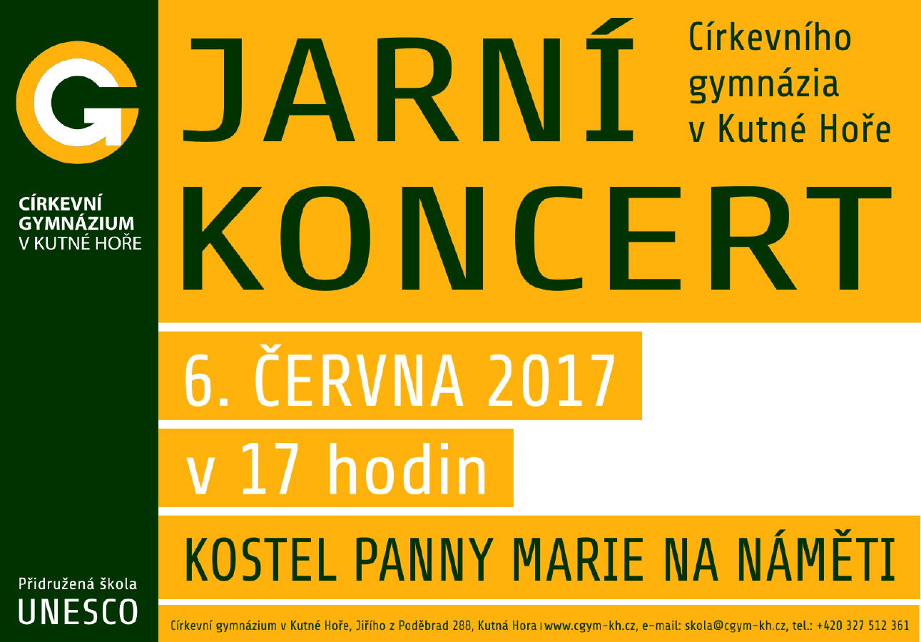 Jarní koncert Církevního gymnázia proběhl 6. června 2017 v 17 hodin v Kostele Panny Marie Na Náměti.