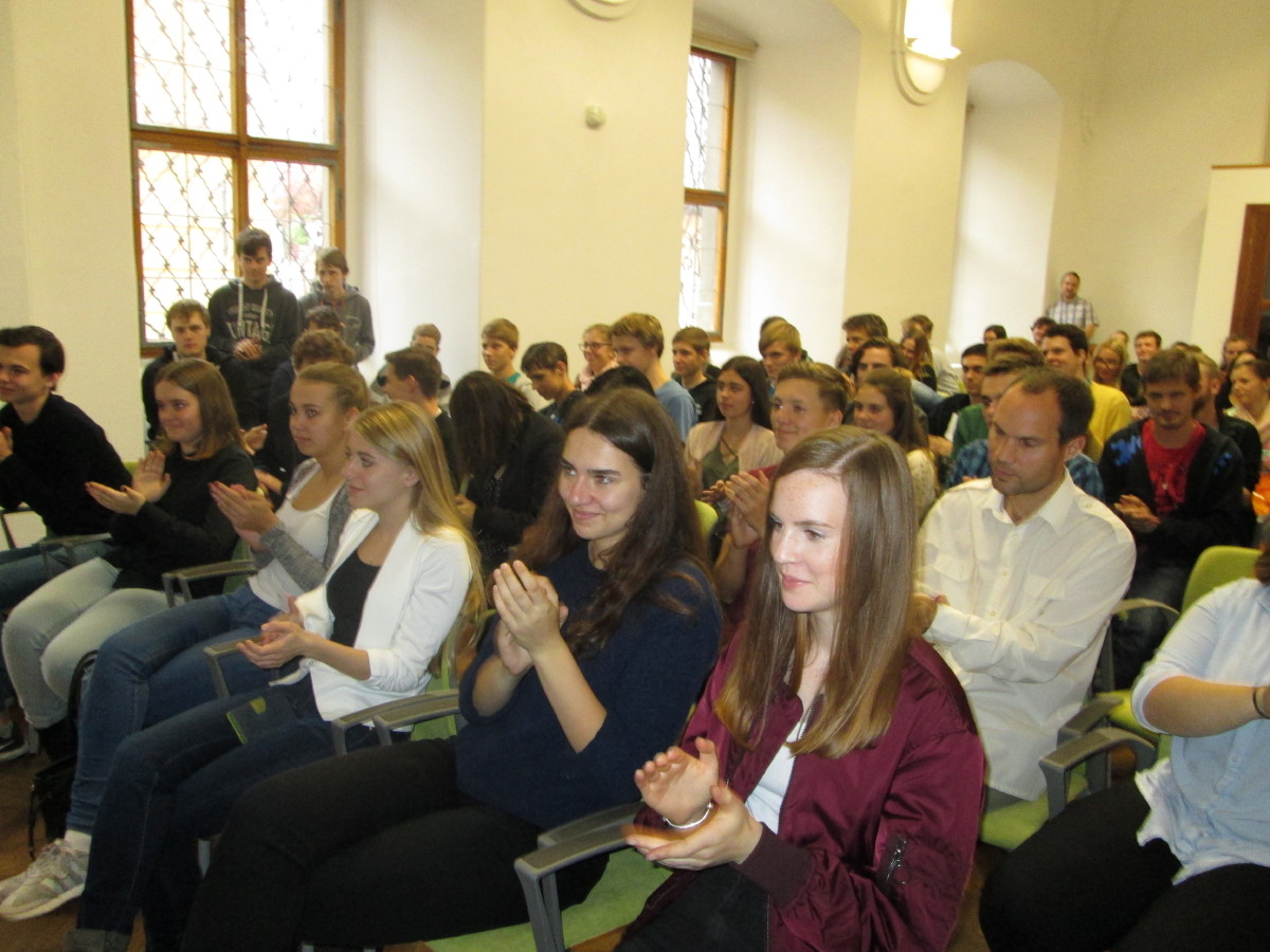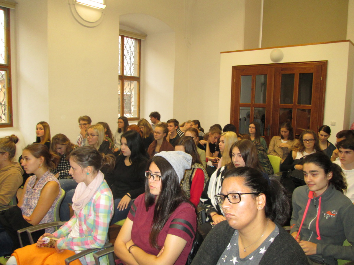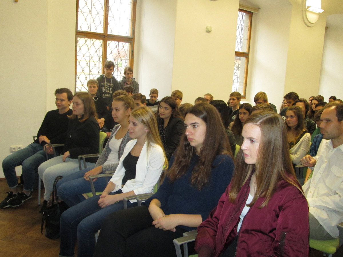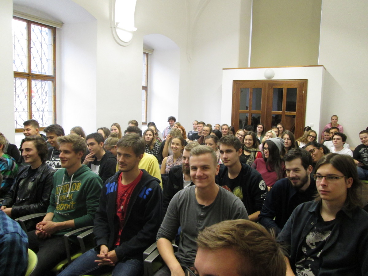 Přednáška na téma Česká republika a její postavení v Evropské unii byla pojata Karlem Schwarzenbergem velmi originálně a věnoval jí pouhých 20 minut. Vyzval raději studenty, aby se ptali, diskutovali a vyjadřovali svůj pohled na věci a problémy. Ti využili nabízené možnosti a jejich dotazy se týkaly nejen politiky, ale i životního prostředí, problémů migrace a náboženství a osobních hodnot moderního člověka.