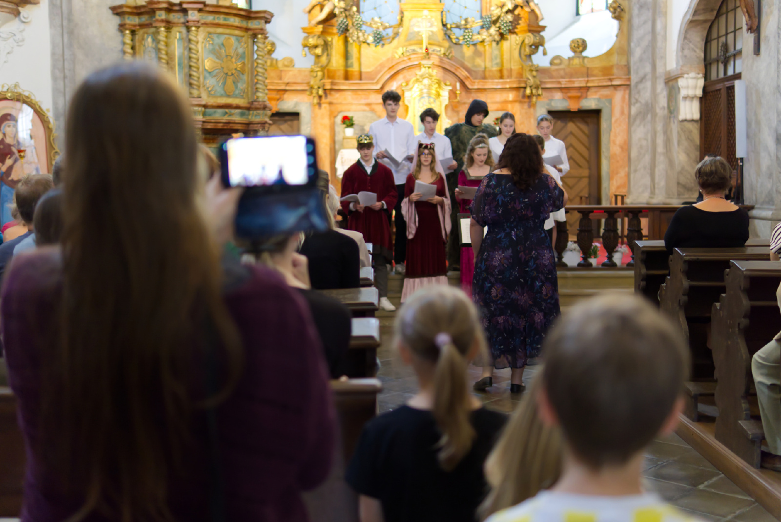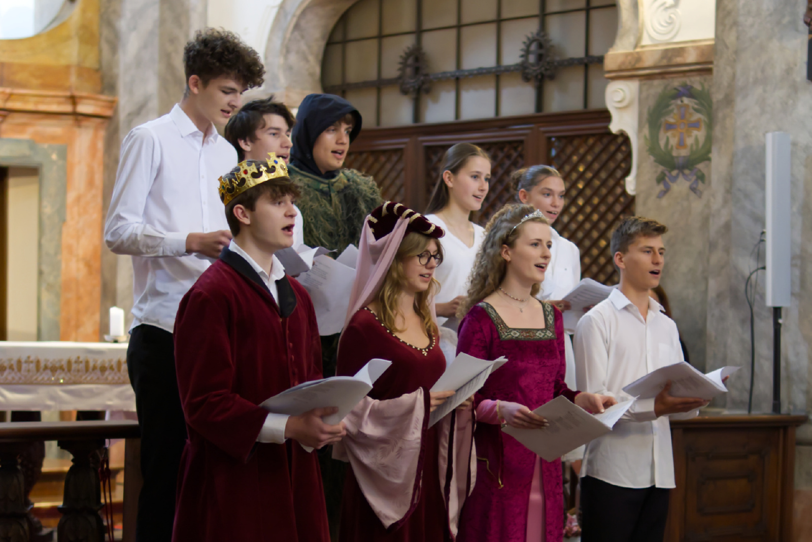 Jarním koncertem od 16:00 hodin nás provedly kvartánky Johanka Jezberová a Anežka Krátká. Na programu byla čísla sboru, scholy, tříd i menších hudebních těles. Plný kostel a úsměvy na tvářích v publiku dávaly najevo, že studenti pod vedením všech hudebních pedagogů školy předvedli krásné písně, pásma či instrumentální vystoupení. Tímto všem zúčastněným děkujeme za čas a píli, kterou přípravě věnovali.