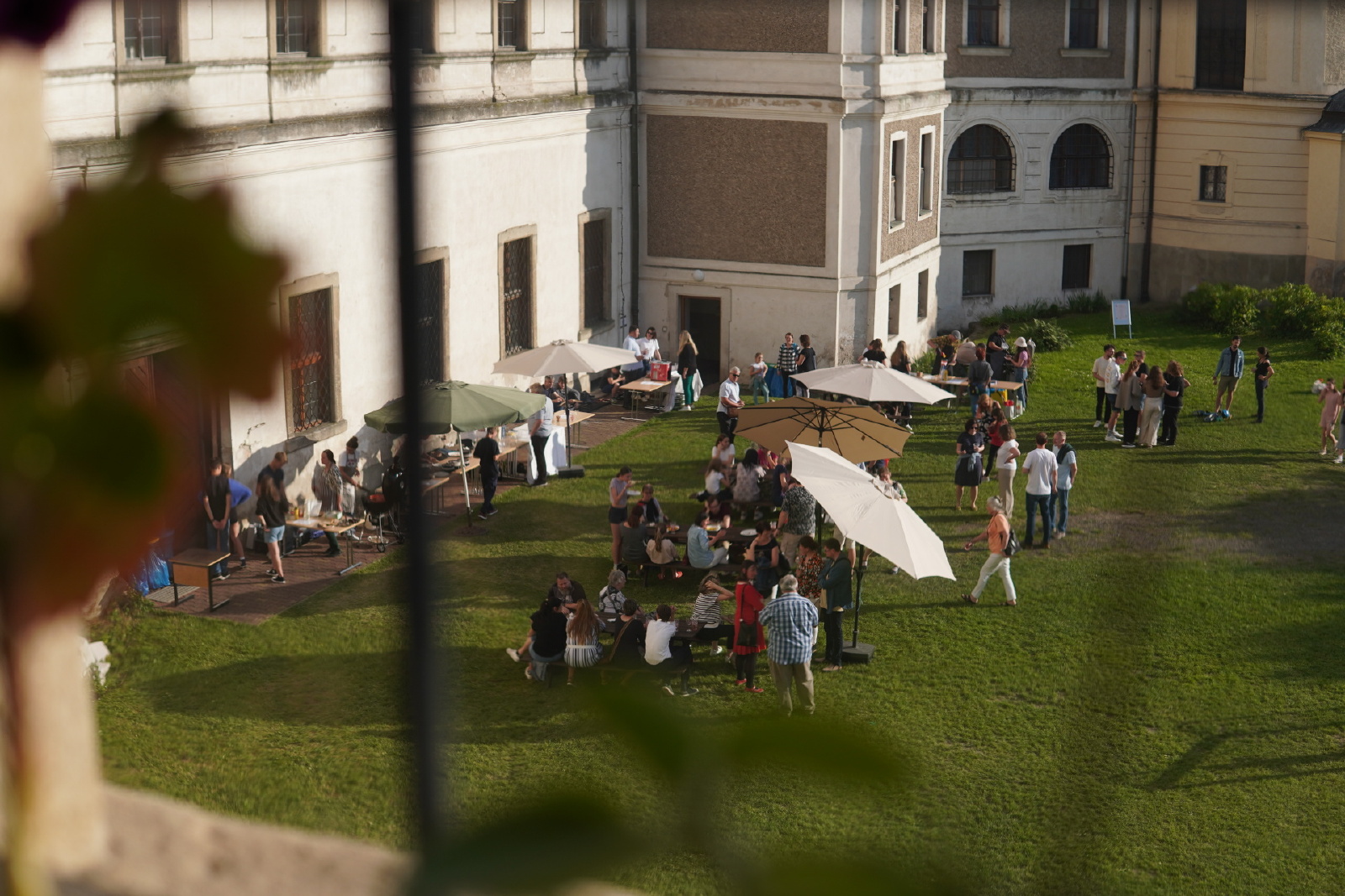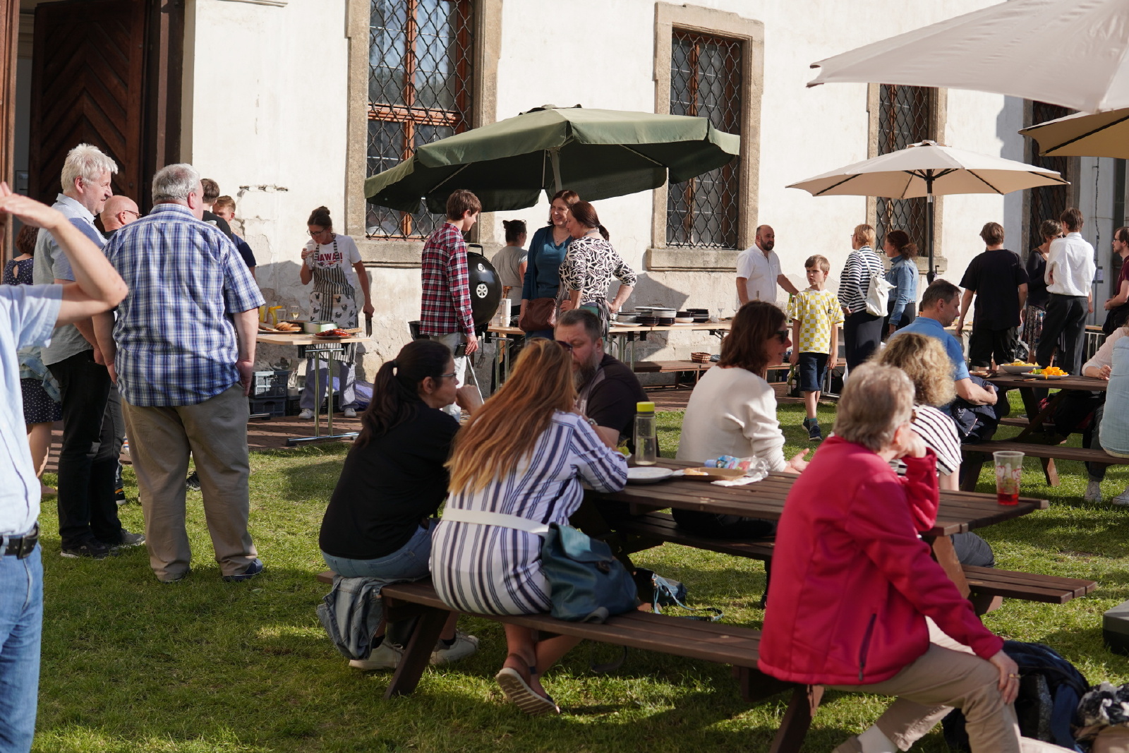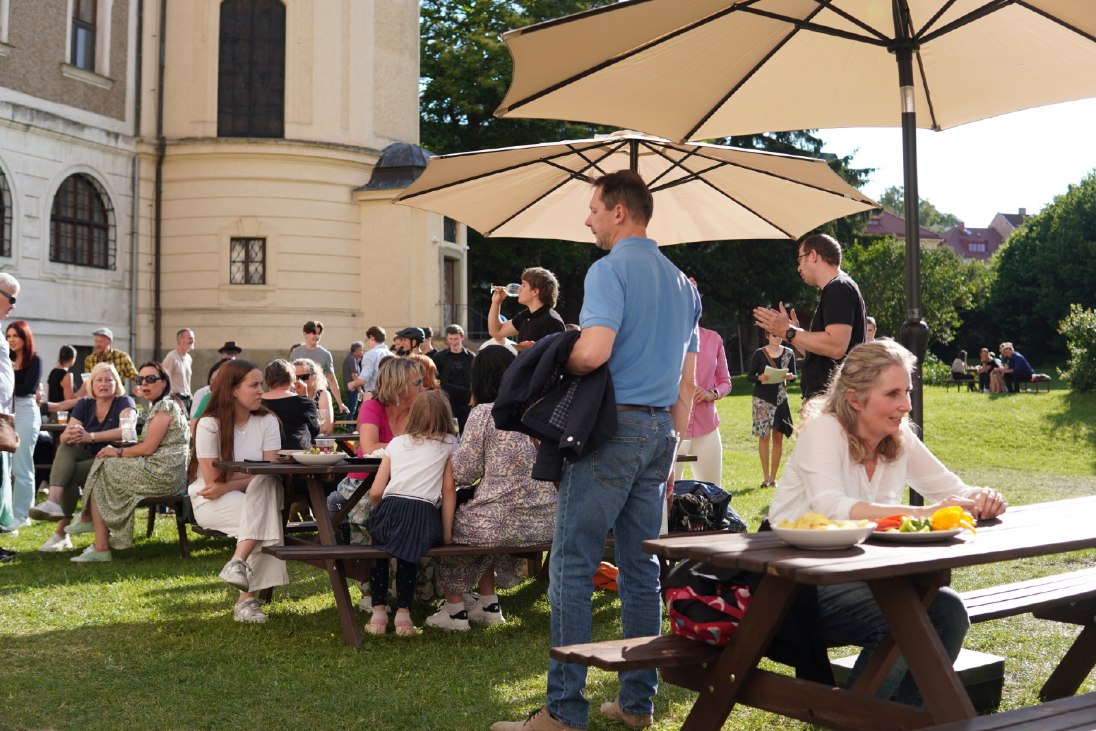Po krásném koncertě pokračoval program na zahradě, kde si bylo možné zakoupit dobré občerstvení nebo tombolu a přispět tak spolku Sdružení rodičů a přátel školy, který zahradní slavnost pořádal a školu pravidelně podporuje. Na řadu přišlo také akordeonové vystoupení Katky Šátkové nebo představení Dlouhý, Široký a Krátkozraký připravované školním klubem. Na své si mohli přijít nadšenci do fyzicky nenáročných her - piškvorků a šachů, jejichž klání připravovali studenti. Komu pohyb chyběl, v přátelské atmosféře mohl využít možnost fotbalu, ping-pongu nebo se po školní zahradě projet na kole. Neformální atmosféře přispělo nadšení učitelů, rodičů a studentů, kteří se zasadili za plynulý chod akce nebo si prostě udělali čas a slavnost si přišli užít.