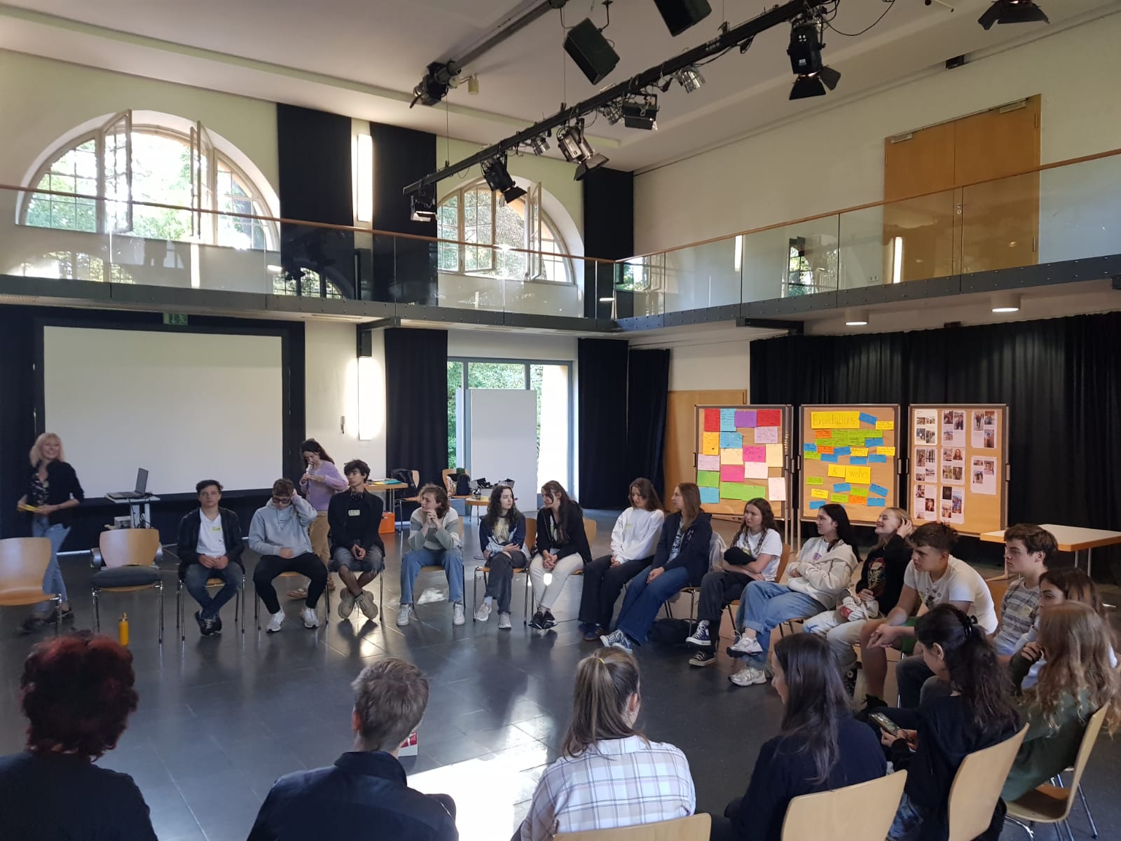 Studenti sexty a septimy Jan Honek, Anežka Smutná a Vojta Krátký, se ve dnech 13.-18. 9. zúčastnili česko-německého setkání mládeže v rámci projektu Sdílená zkušenost, které pořádaly organizace Schola Fidantiae – Škola s(ebe)vědomí, z. s. ve spolupráci s partnerskou organizací Europäische Jugendbildungs - und Jugendbegegnungsstätte ve Výmaru. Projekt Sdílená zkušenost se zabývá tím, jaké byly důsledky porušování lidské důstojnosti a práv během 20. století v kontextu nacionálního socialismu a později socialismu v Československu