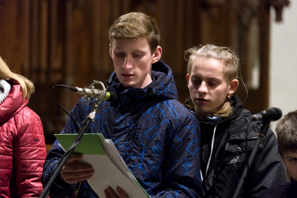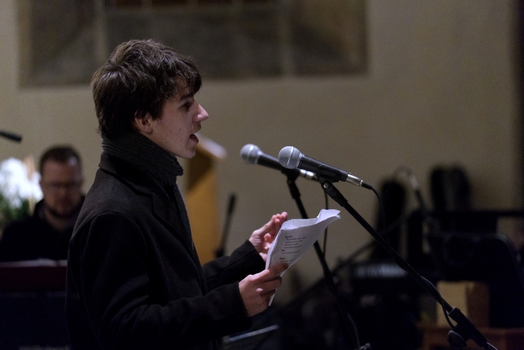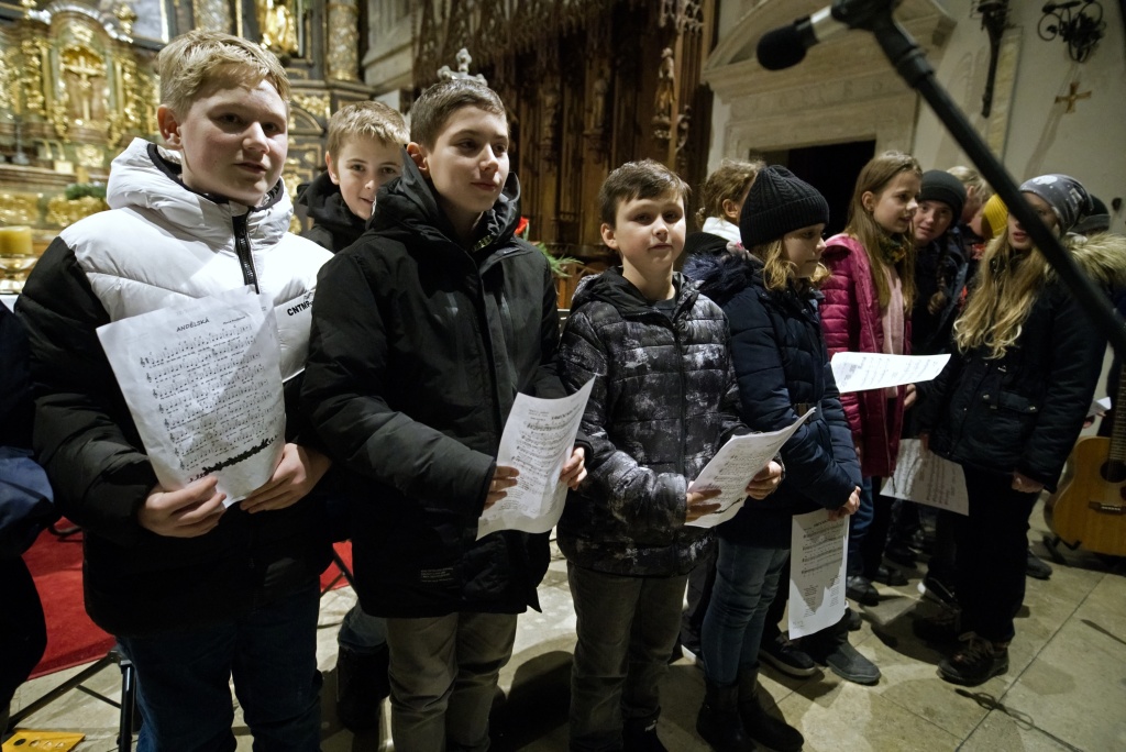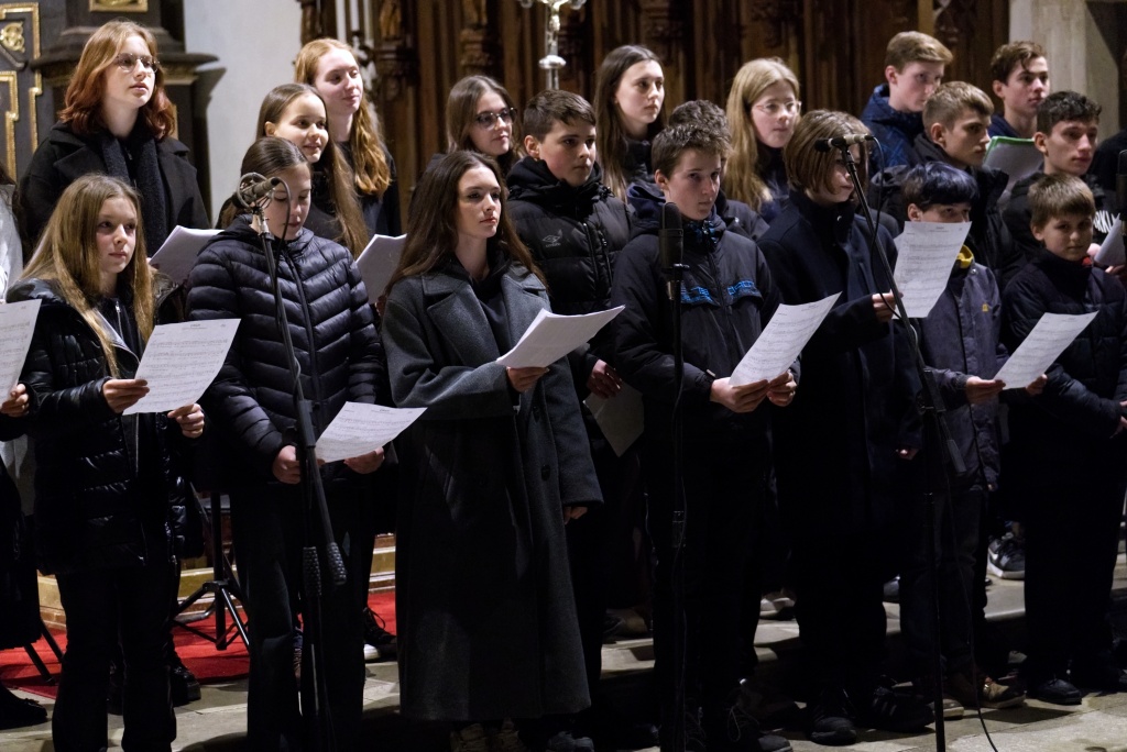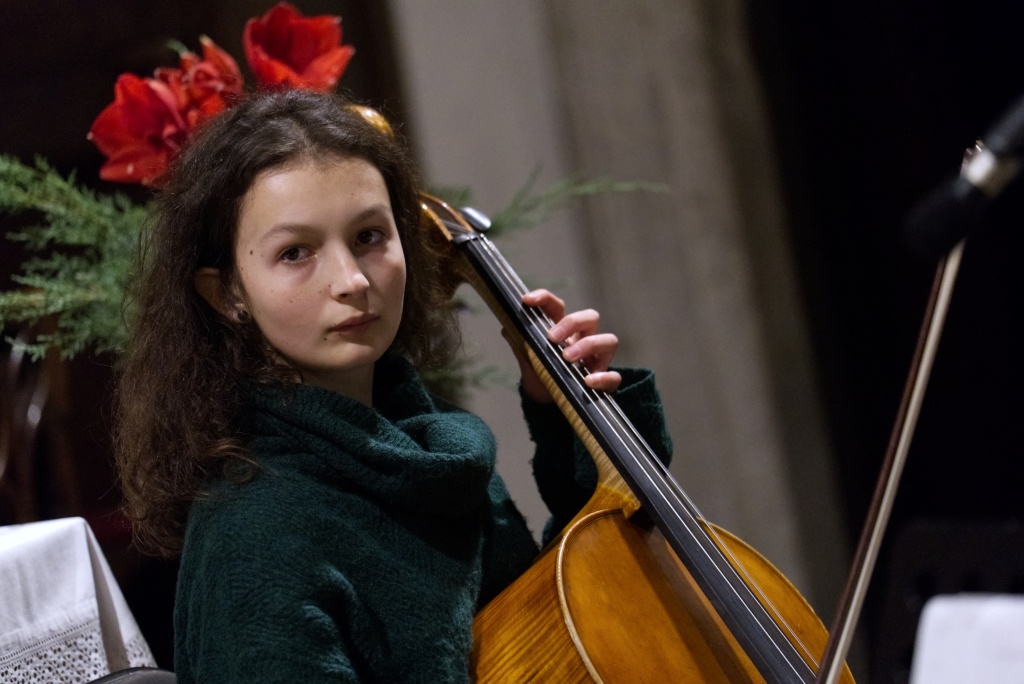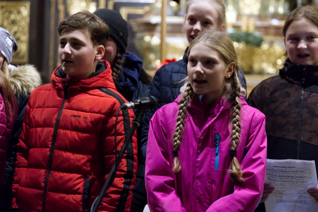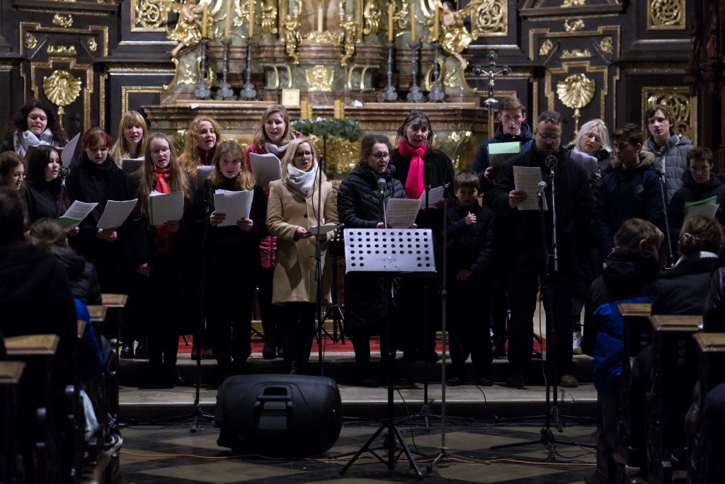 ... naladil do koncertní atmosféry Alex Drnek s Bachovou fugou a preludiem na varhany. Celým programem nás provázely sextánky Anežka Zajícová a Andrea Haspeklová, které dokázaly slovně zpěstřit i typické koncertní momenty při nastupování různých hudebních telěs. Těch vystoupilo vskutku dost a všem se jejich výkony velmi povedly. Kdo že to byl? Prima s vánočními písněmi, schola, školní sbor i s učiteli (i bez nich), kde mezi dirigenty zaplula i studentka Markéta Šustková. Poslechli jsme si violoncellové kvarteto, pěvěcké duo Judity Kubíkové a Honzy Burýška s doprovodem multifunkční hudebnice Elišky Těmínové nebo slova k zamyšlení od spirituála Pavla Tobka. Dále jsme si užili studenty sexty s okouzlující pohádkou Dvanáct měsíčků nebo vystoupení studentů sekundy a kvinty s hostujícími dalšími muzikanty, kteří koncert uzavřeli skladbou Z Betléma se ozývá od známé skupiny Spirituál Kvintet. Na koncertě se také podíleli vyučující a hostující žáci ZUŠ, kterým tímto děkujeme za spolupráci, stejně tak jako farnosti Kutná Hora. Velký dík patří hlavním organizátorům - Lucii Čechalové, Beatě Kotyzové-Peterkové, Martině Uttendorfské a Michalu Šramkovi, ale také všem učinkujícím, včetně výtvarníků, kteří připravili přáníčka pro všechny návštěvníky. Děkujeme!