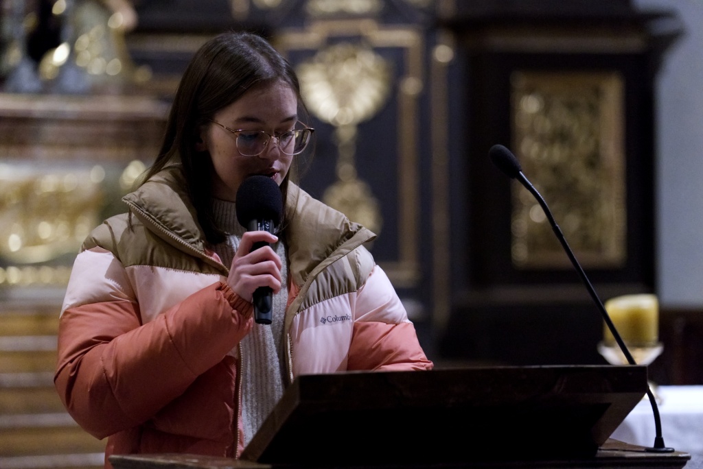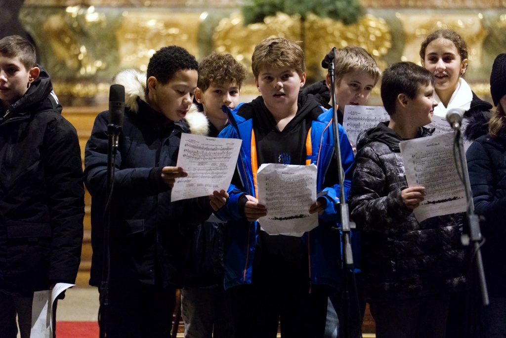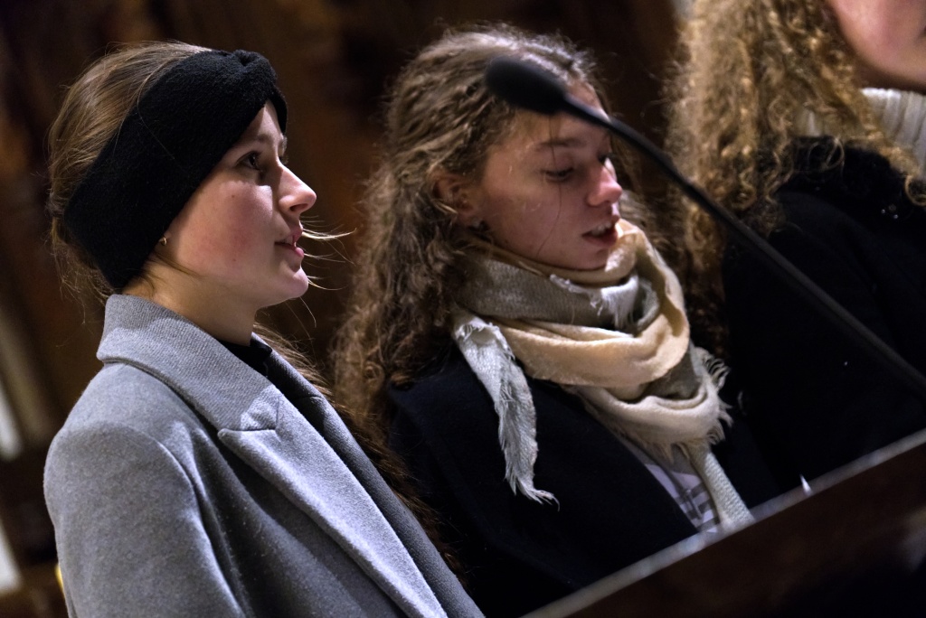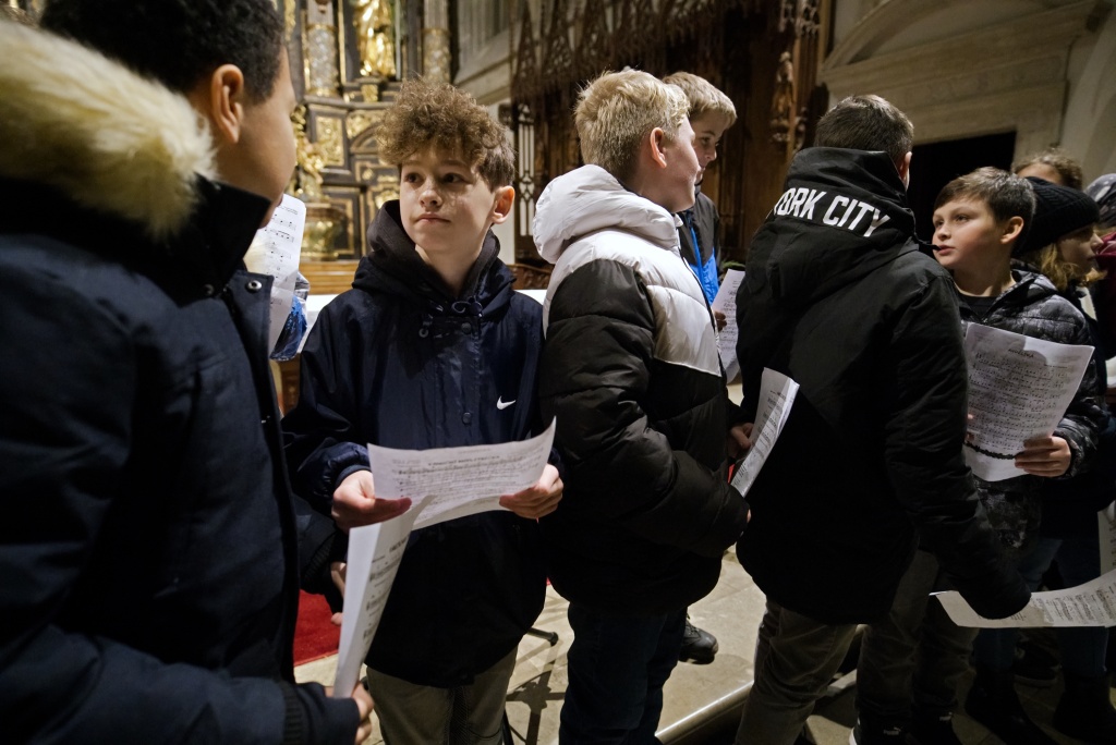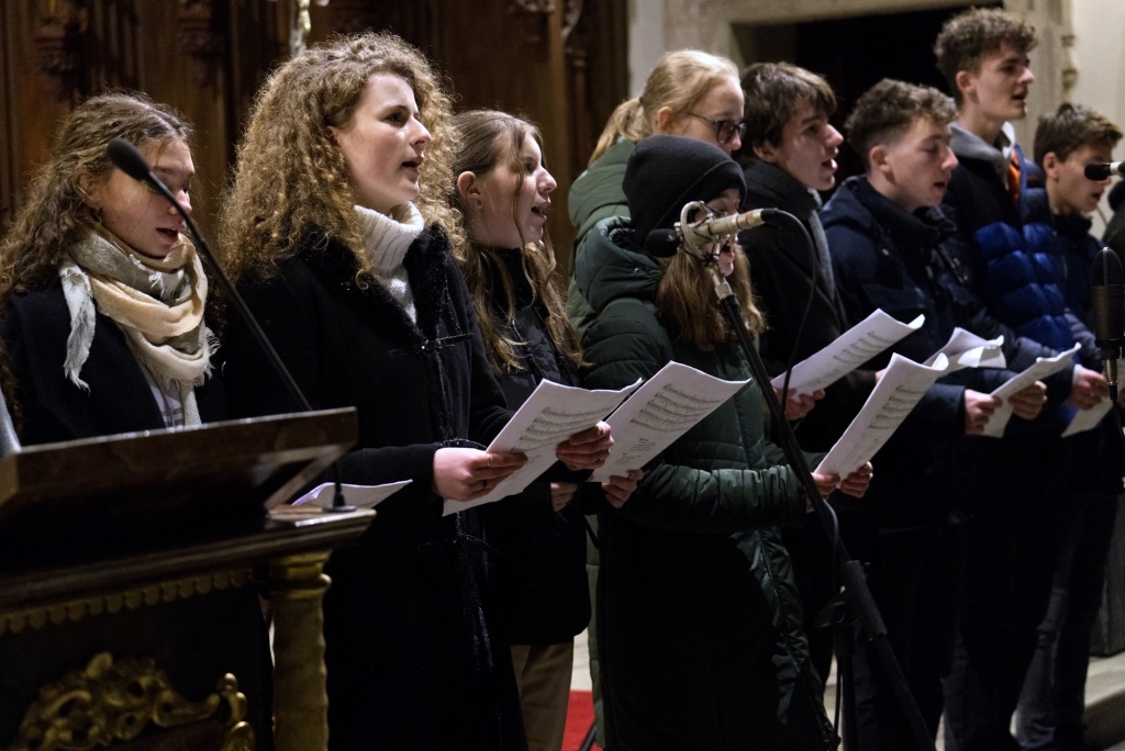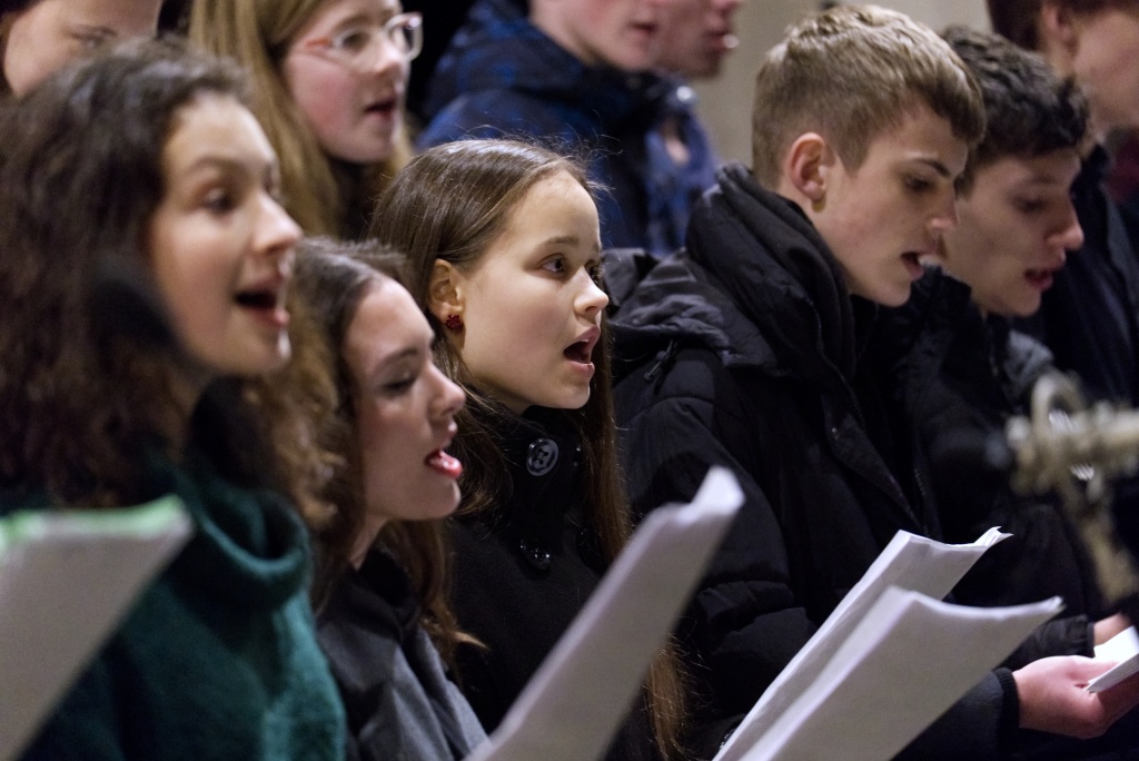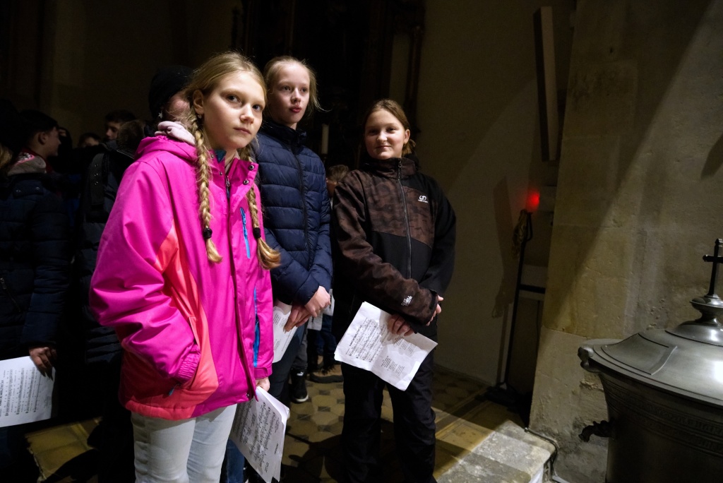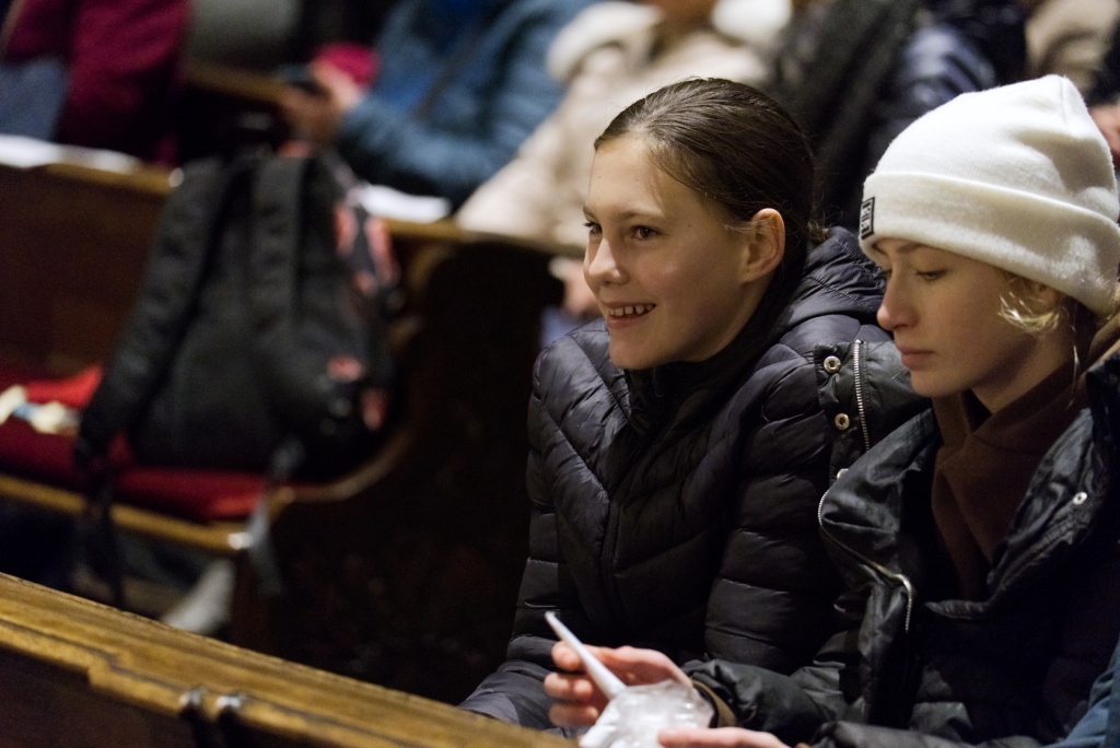... naladil do koncertní atmosféry Alex Drnek s Bachovou fugou a preludiem na varhany. Celým programem nás provázely sextánky Anežka Zajícová a Andrea Haspeklová, které dokázaly slovně zpěstřit i typické koncertní momenty při nastupování různých hudebních telěs. Těch vystoupilo vskutku dost a všem se jejich výkony velmi povedly. Kdo že to byl? Prima s vánočními písněmi, schola, školní sbor i s učiteli (i bez nich), kde mezi dirigenty zaplula i studentka Markéta Šustková. Poslechli jsme si violoncellové kvarteto, pěvěcké duo Judity Kubíkové a Honzy Burýška s doprovodem multifunkční hudebnice Elišky Těmínové nebo slova k zamyšlení od spirituála Pavla Tobka. Dále jsme si užili studenty sexty s okouzlující pohádkou Dvanáct měsíčků nebo vystoupení studentů sekundy a kvinty s hostujícími dalšími muzikanty, kteří koncert uzavřeli skladbou Z Betléma se ozývá od známé skupiny Spirituál Kvintet. Na koncertě se také podíleli vyučující a hostující žáci ZUŠ, kterým tímto děkujeme za spolupráci, stejně tak jako farnosti Kutná Hora. Velký dík patří hlavním organizátorům - Lucii Čechalové, Beatě Kotyzové-Peterkové, Martině Uttendorfské a Michalu Šramkovi, ale také všem učinkujícím, včetně výtvarníků, kteří připravili přáníčka pro všechny návštěvníky. Děkujeme!