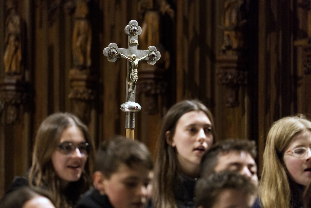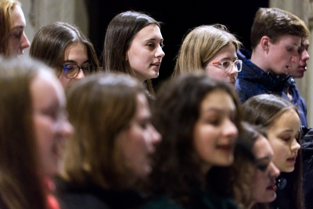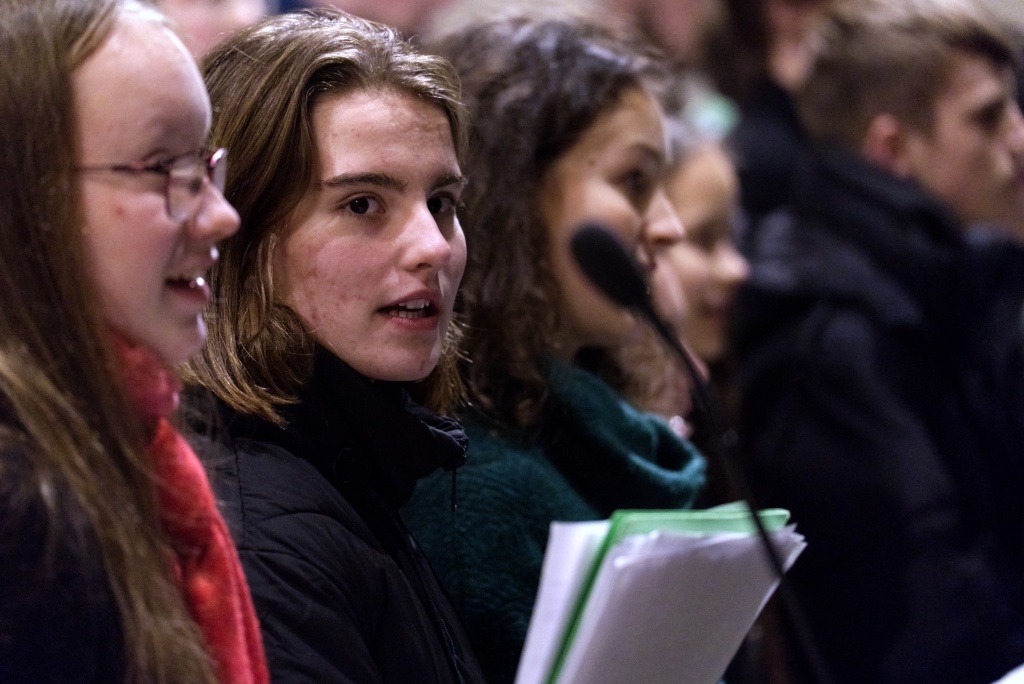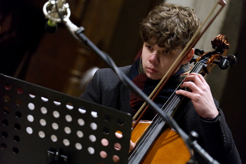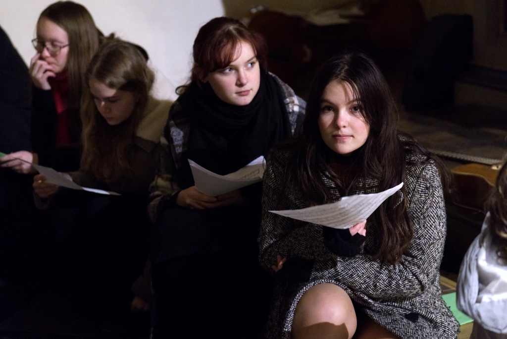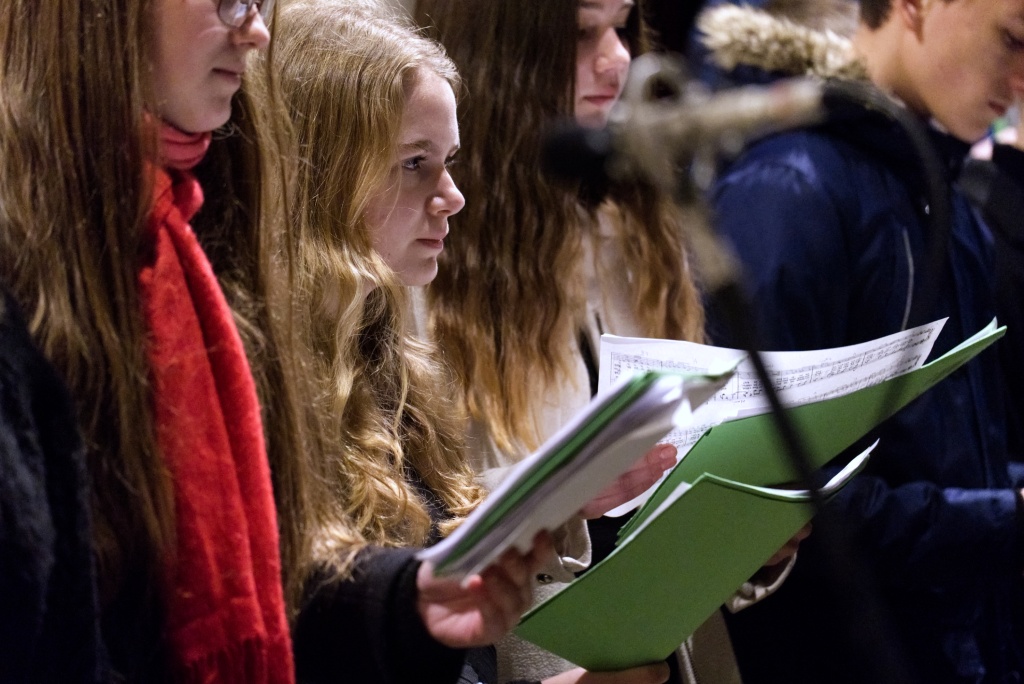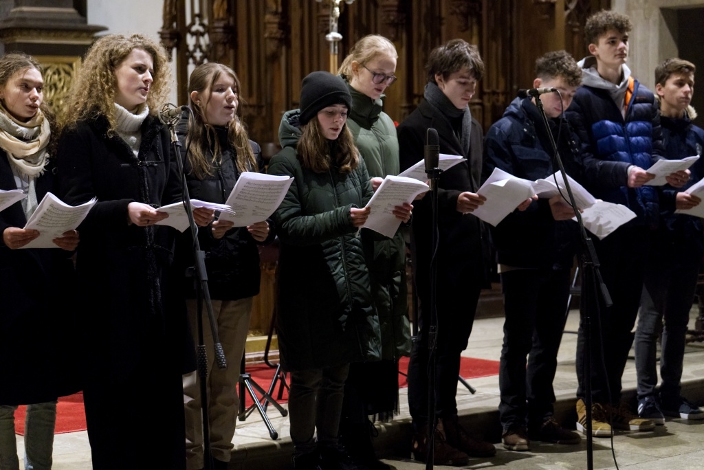 ... naladil do koncertní atmosféry Alex Drnek s Bachovou fugou a preludiem na varhany. Celým programem nás provázely sextánky Anežka Zajícová a Andrea Haspeklová, které dokázaly slovně zpěstřit i typické koncertní momenty při nastupování různých hudebních telěs. Těch vystoupilo vskutku dost a všem se jejich výkony velmi povedly. Kdo že to byl? Prima s vánočními písněmi, schola, školní sbor i s učiteli (i bez nich), kde mezi dirigenty zaplula i studentka Markéta Šustková. Poslechli jsme si violoncellové kvarteto, pěvěcké duo Judity Kubíkové a Honzy Burýška s doprovodem multifunkční hudebnice Elišky Těmínové nebo slova k zamyšlení od spirituála Pavla Tobka. Dále jsme si užili studenty sexty s okouzlující pohádkou Dvanáct měsíčků nebo vystoupení studentů sekundy a kvinty s hostujícími dalšími muzikanty, kteří koncert uzavřeli skladbou Z Betléma se ozývá od známé skupiny Spirituál Kvintet. Na koncertě se také podíleli vyučující a hostující žáci ZUŠ, kterým tímto děkujeme za spolupráci, stejně tak jako farnosti Kutná Hora. Velký dík patří hlavním organizátorům - Lucii Čechalové, Beatě Kotyzové-Peterkové, Martině Uttendorfské a Michalu Šramkovi, ale také všem učinkujícím, včetně výtvarníků, kteří připravili přáníčka pro všechny návštěvníky. Děkujeme!