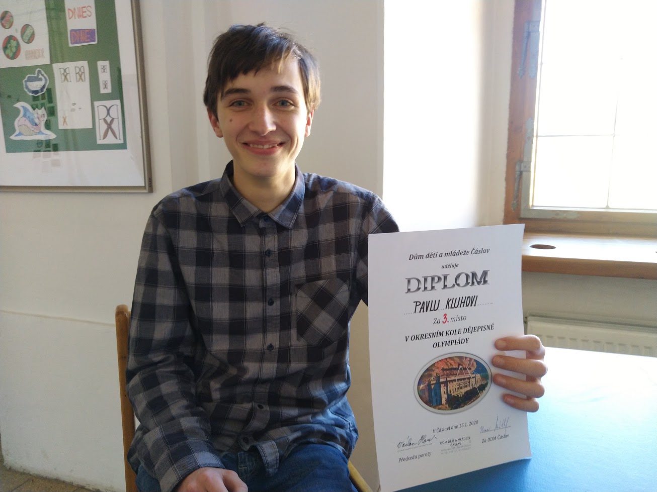 Výrazných úspěchů dosáhli naši studenti v okresním kole Dějepisné olympiády, jejíž letošní téma "Dlouhé století se loučí" zahrnovalo období let 1880 - 1920. Pavel Kluh (kvinta) obsadil v II. kategorii 3. místo, následující dvě místa patřila Elišce Gargulové a Kláře Špačkové (obě ze sexty).