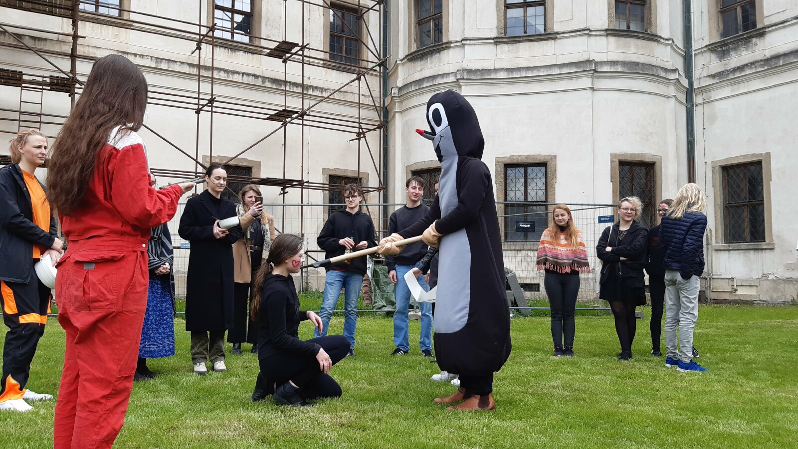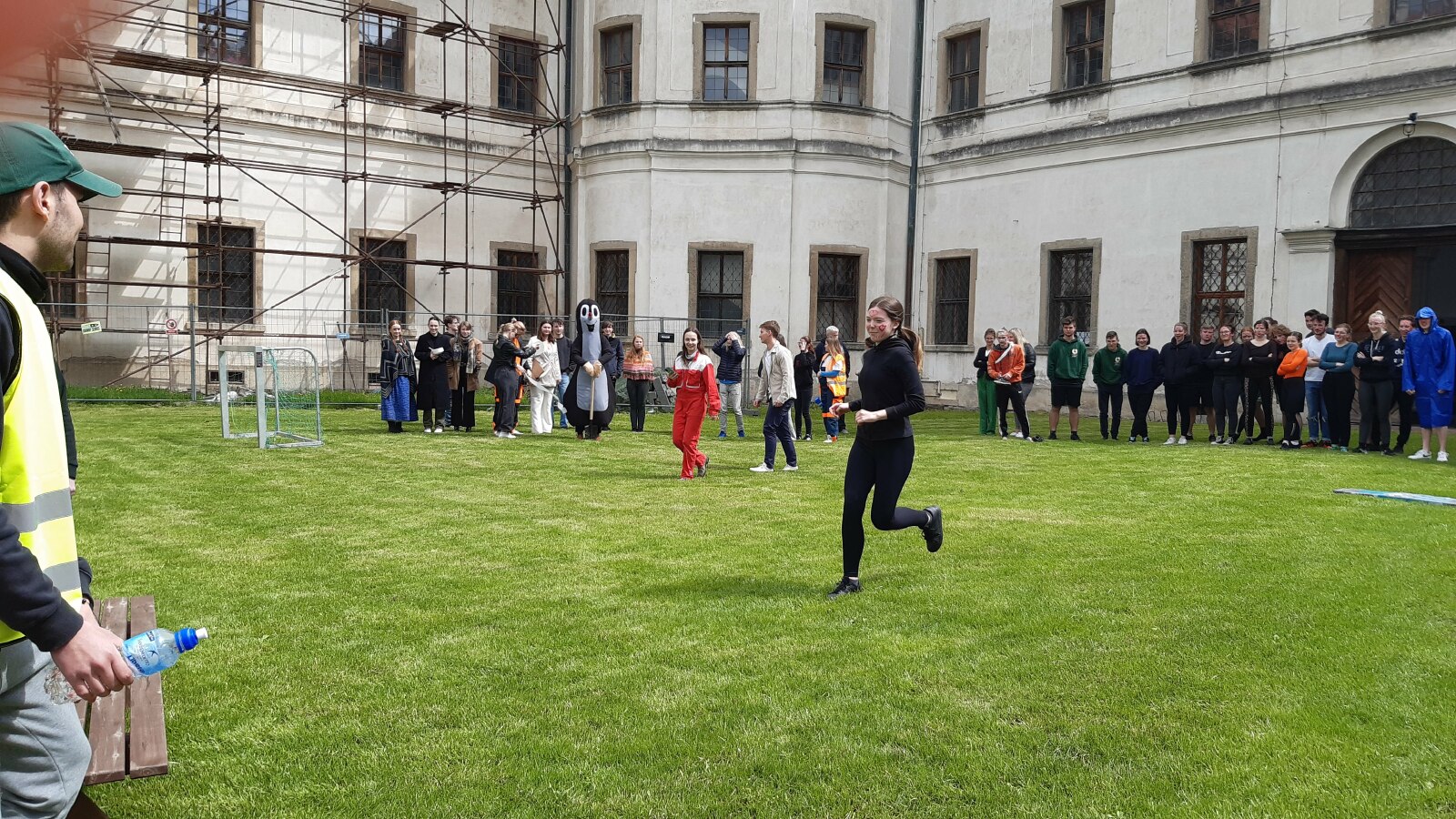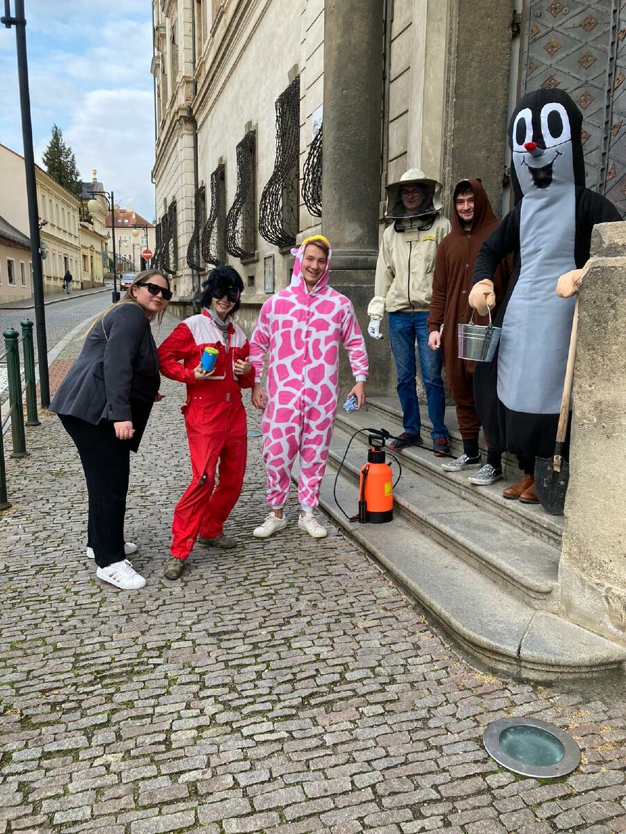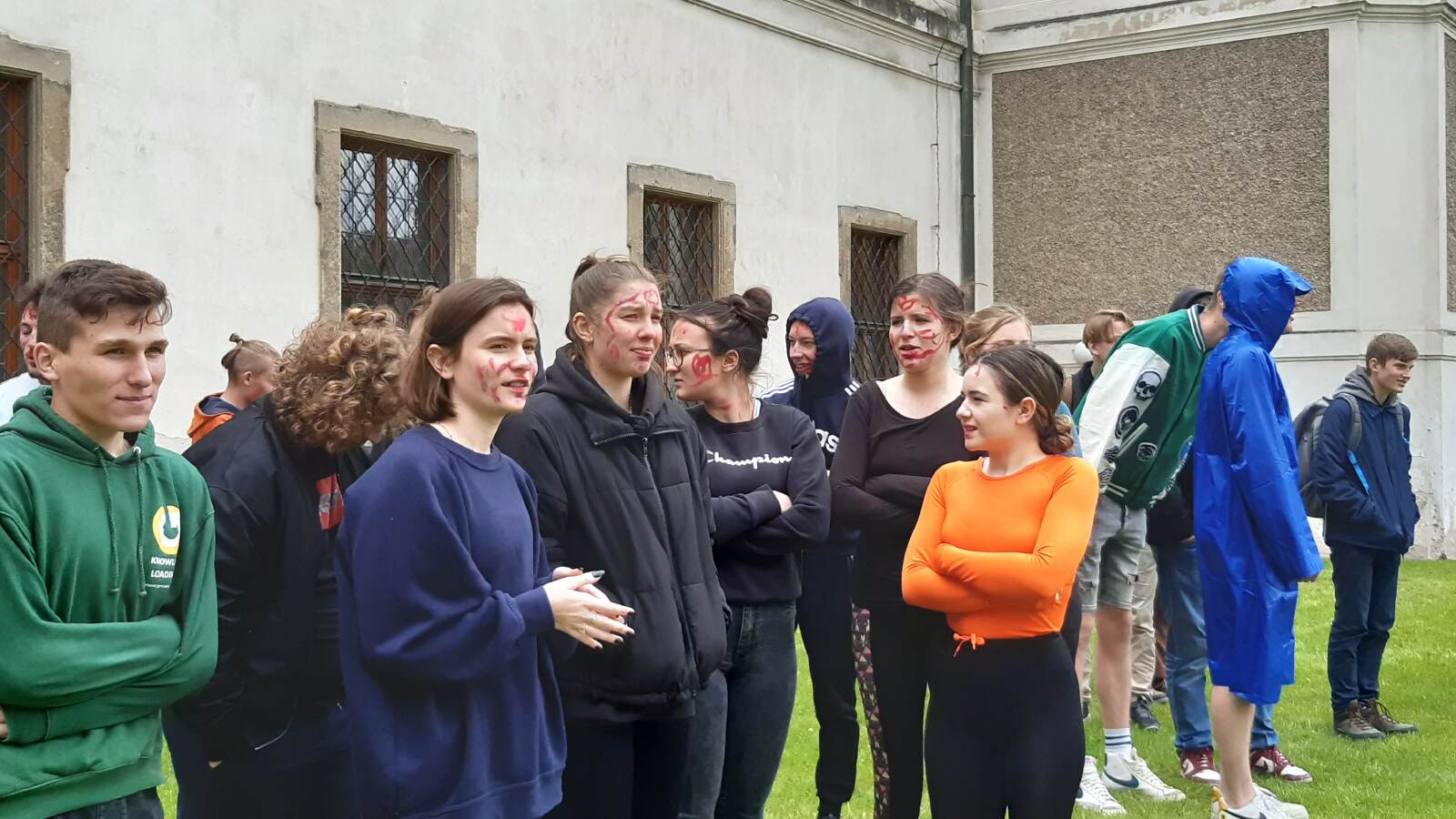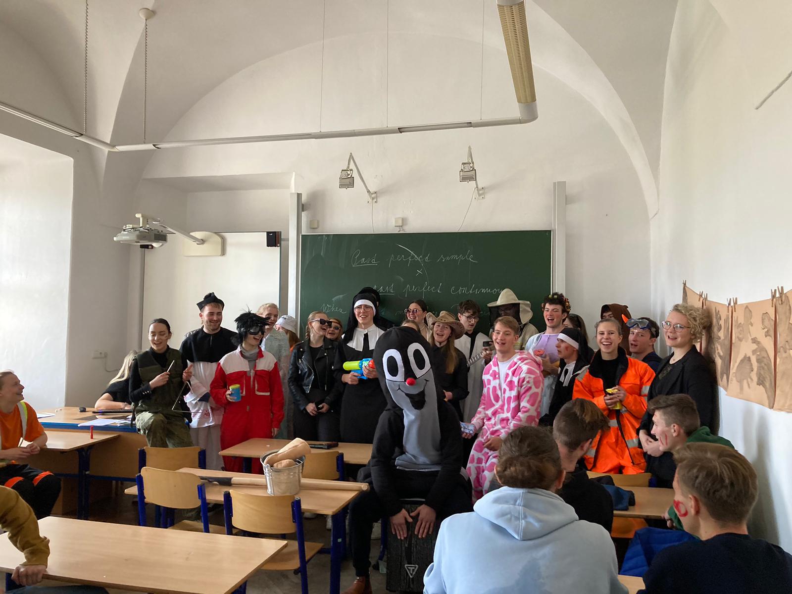 V závěru dubna nadešel studentům oktávy ten správný čas rozloučit se s denní docházkou na gymnáziu. Veselé, krásné a vtipné postavičky prošly při posledním zvonění školou i městem. V druhé části programu maturanti, kteří se už v těchto dnech doslova potí na potítku, protože probíhají ústní maturitní zkoušky, pasovali septimány na své nástupce. Náročnou opičí dráhu s nevšedními zážitky septimáni zvládli se ctí navzdory velmi chladnému počasí a zjevně velmi nedobré ochutnávce na předposledním stanovišti. Septimáni, klobouk dolů. A maturatnům? Těm teď můžeme všichni držet palce, aby zdárně zakončili studium.