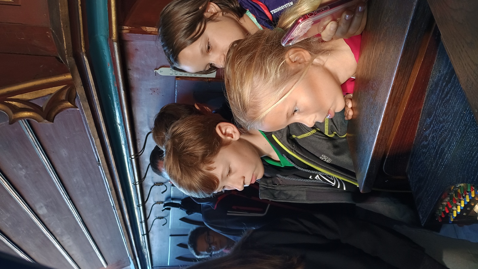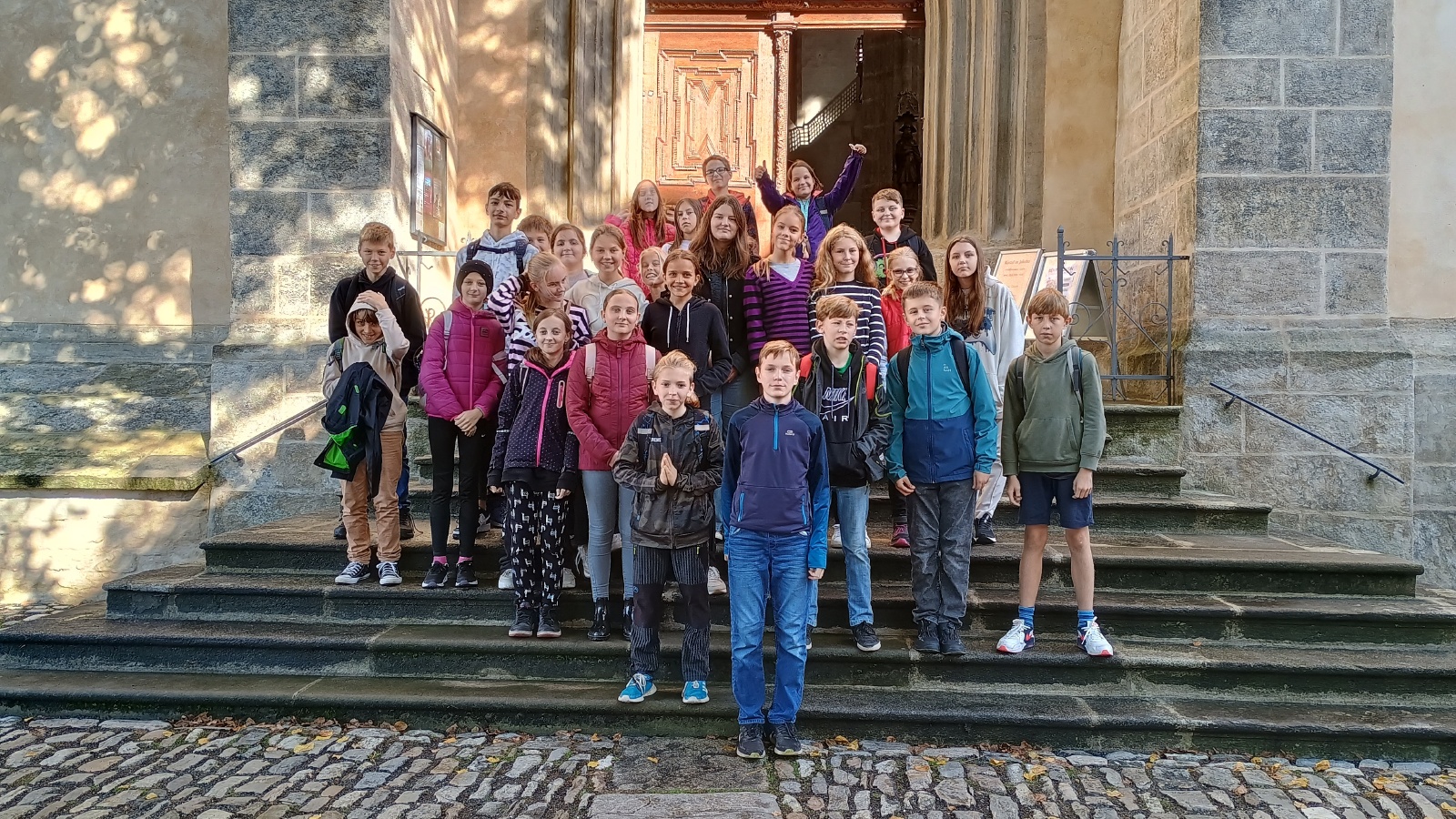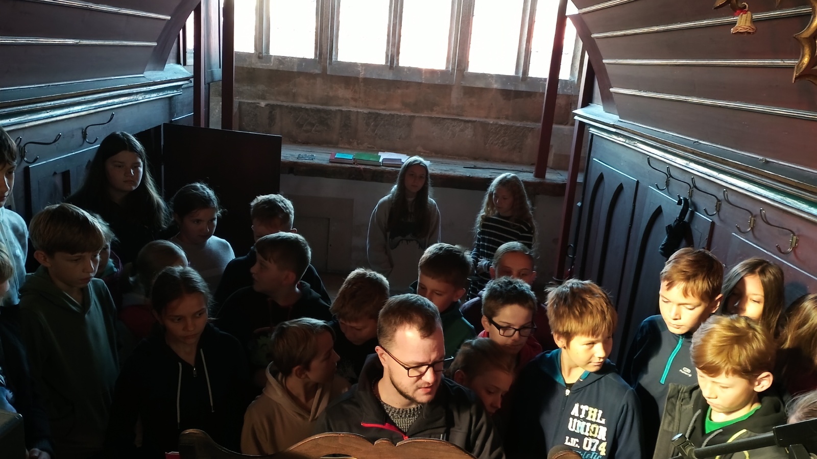 Ve středu 9. října navštívili primáni kostel sv. Jakuba. Žáky našich prvních ročníků tradičně na návštěvu kostela posíláme proto, aby se dozvěděli, co se v kostele odehrává, jak se tam lidé chovají a seznámili se také s uměním a významem duchovních staveb. Letošním setkáním primu provedl spirituál Michal Šramko a neváhal žáky pozvat i do takových kostelních koutů, kam se běžný návštěvník obvykle nedostane. Velké nadšení panovalo na kúru, kde si mohli všichni vychutnat sílu varhan při Bachově fuze d moll v podání pana spirituála a zájemci si mohli na vahrany také sami zahrát.