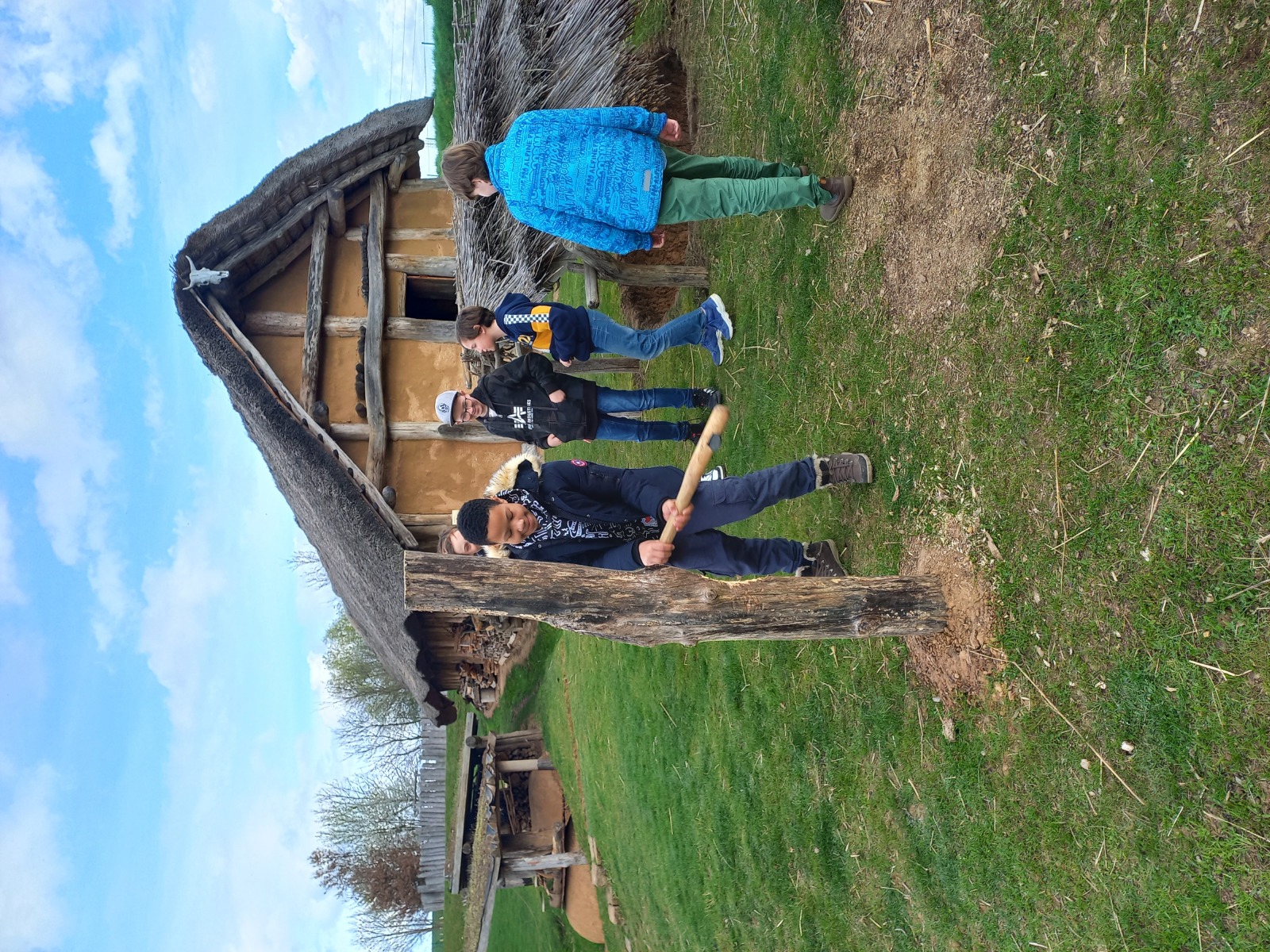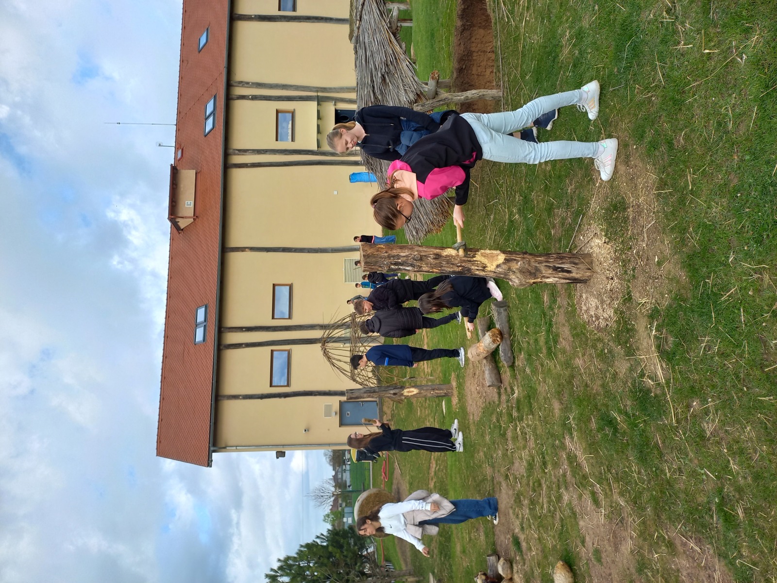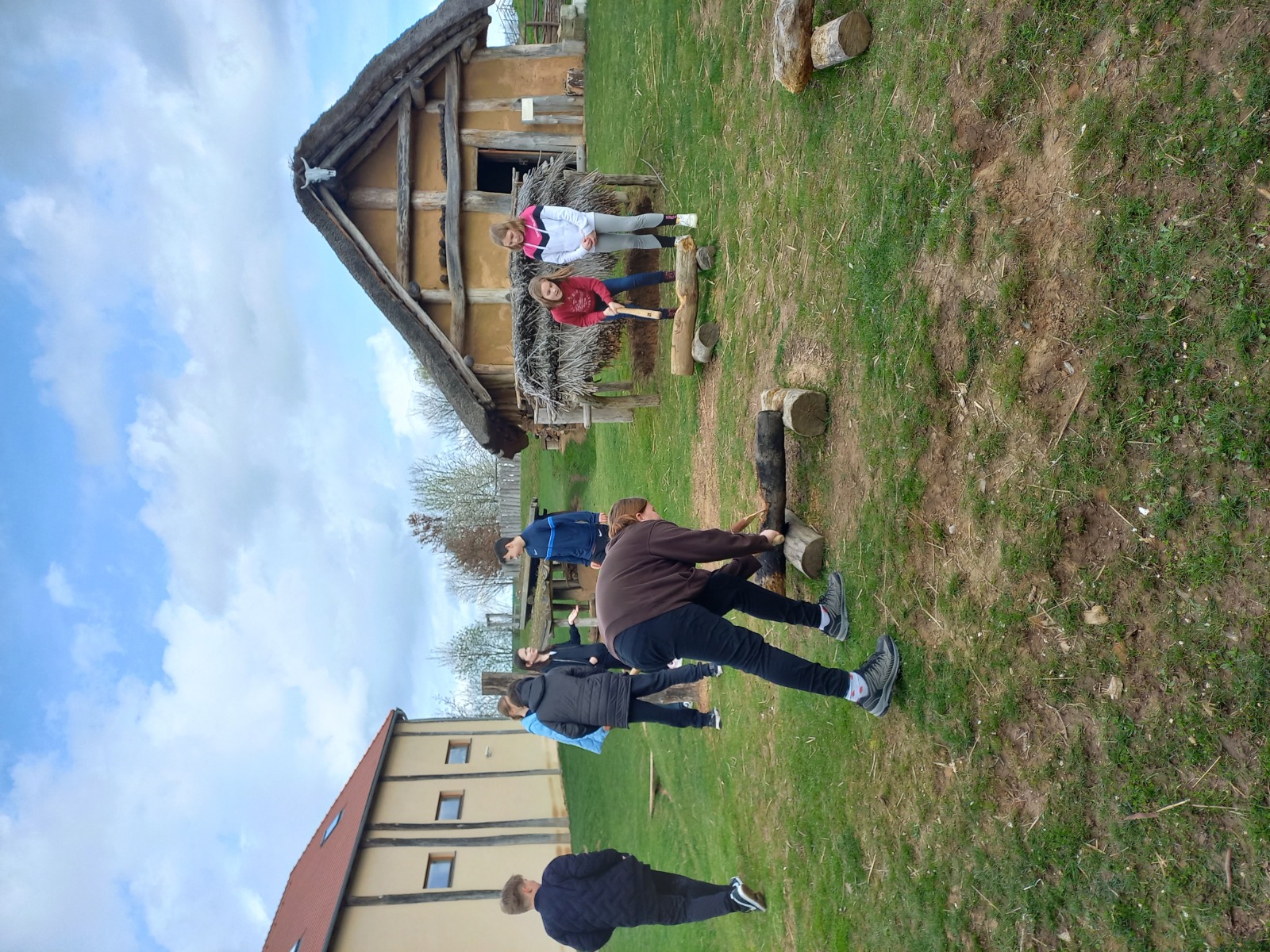 Žáci primy navštívili v pátek 5. 4. dva velmi zajímavé výukové programy v archeoparku Všestary nedaleko Hradce Králové. V první části jsme se seznámili s pazourkovými nástroji, se zbraněmi, dozvěděli jsme se, jak takové nástroje pravděpodobně pravěcí lidé vyráběli, a prohlédli jsme si model vesnice. V druhé části programu jsme navštívili repliku pravěké vesnice a zjistili jsme například, co byl a k čemu možná sloužil rondel. Také jsme si vyzkoušeli práci na poli s dřevěnou motykou, sekání dřeva pravěkými sekerami, drcení obilí, broušení kamenných seker a zkusili jsme házet oštěpem.