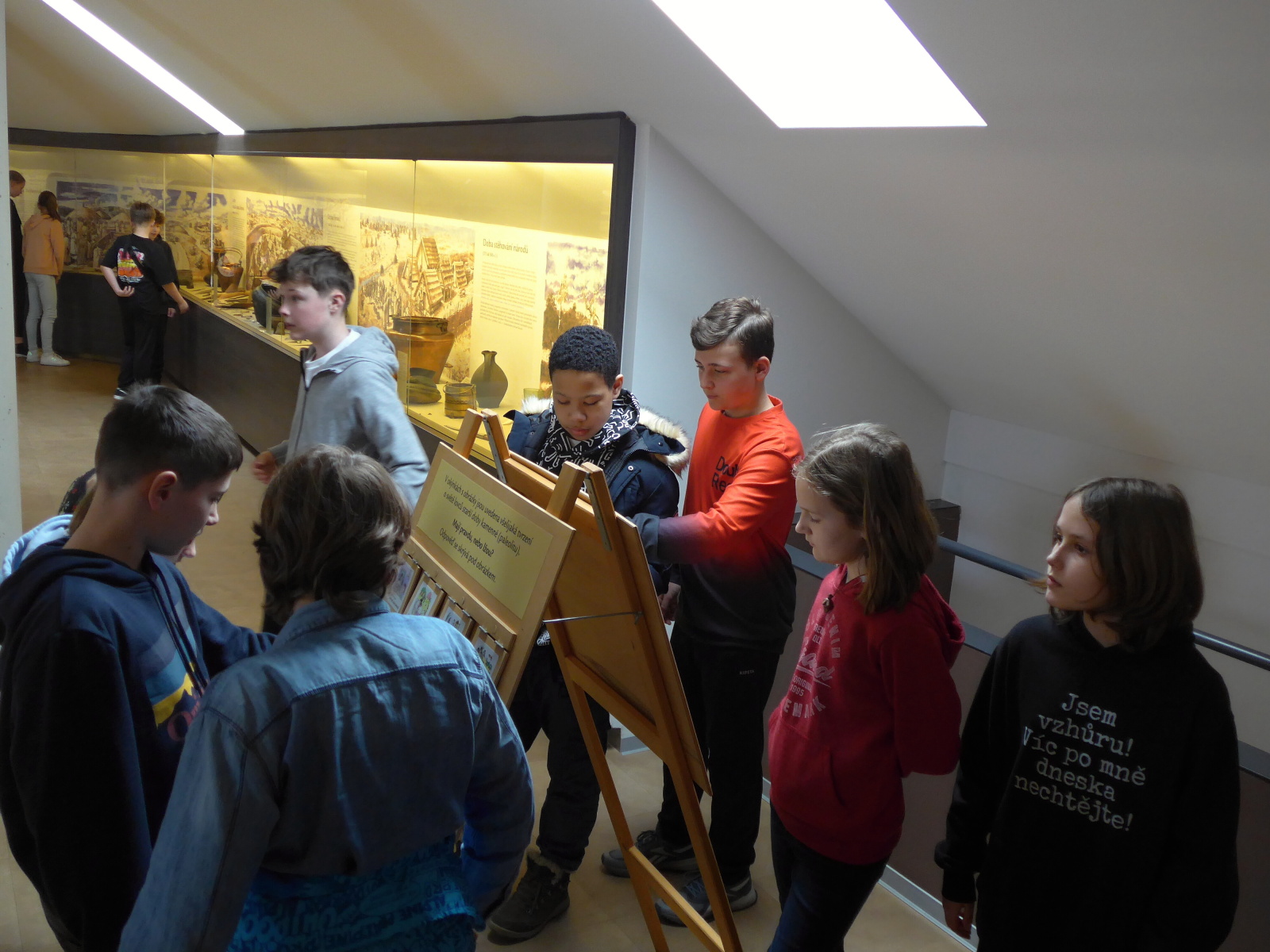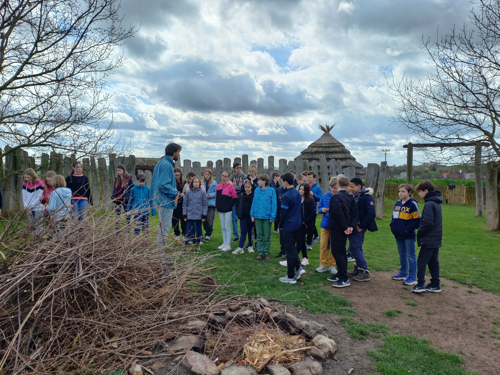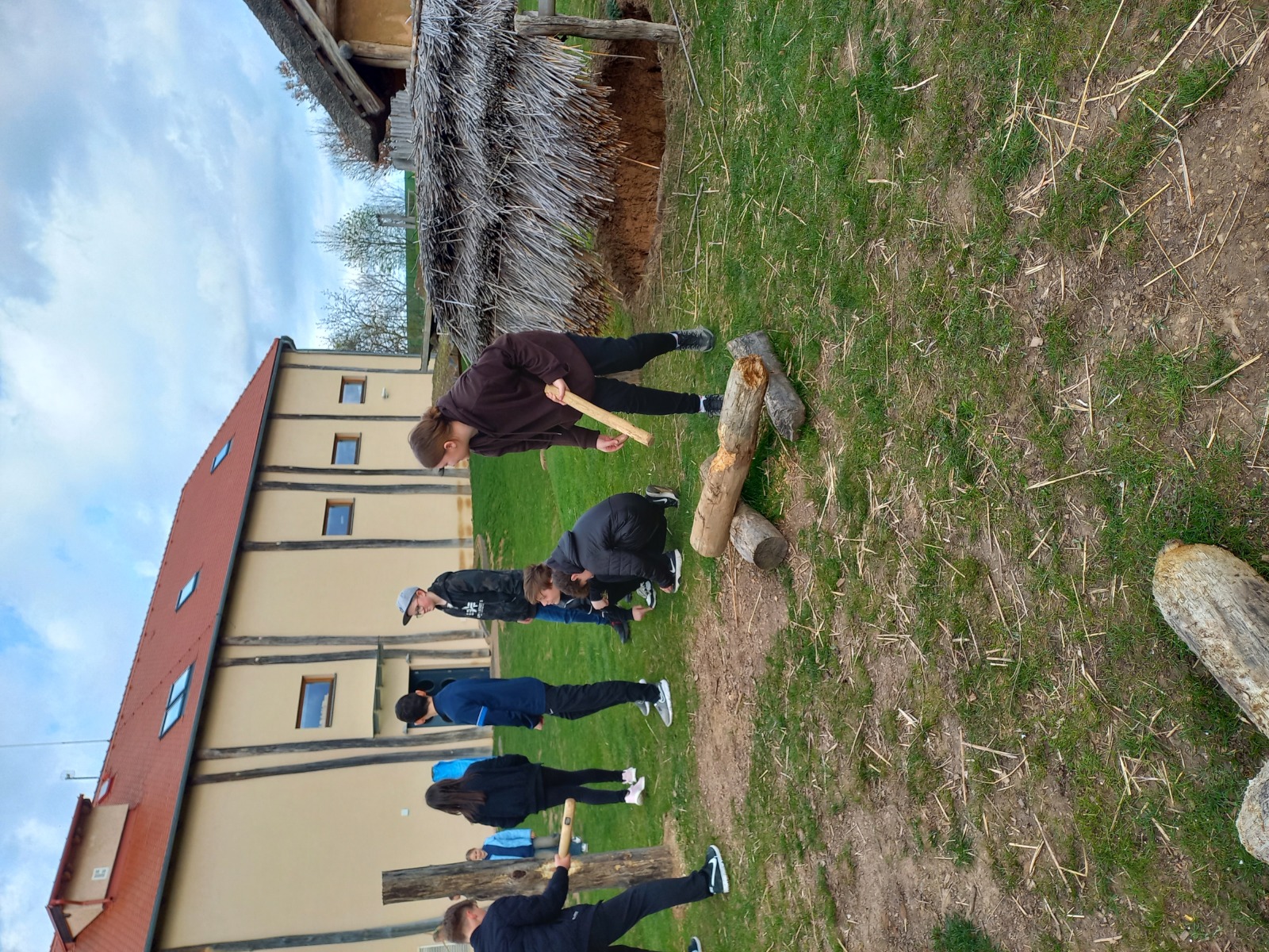 Žáci primy navštívili v pátek 5. 4. dva velmi zajímavé výukové programy v archeoparku Všestary nedaleko Hradce Králové. V první části jsme se seznámili s pazourkovými nástroji, se zbraněmi, dozvěděli jsme se, jak takové nástroje pravděpodobně pravěcí lidé vyráběli, a prohlédli jsme si model vesnice. V druhé části programu jsme navštívili repliku pravěké vesnice a zjistili jsme například, co byl a k čemu možná sloužil rondel. Také jsme si vyzkoušeli práci na poli s dřevěnou motykou, sekání dřeva pravěkými sekerami, drcení obilí, broušení kamenných seker a zkusili jsme házet oštěpem.