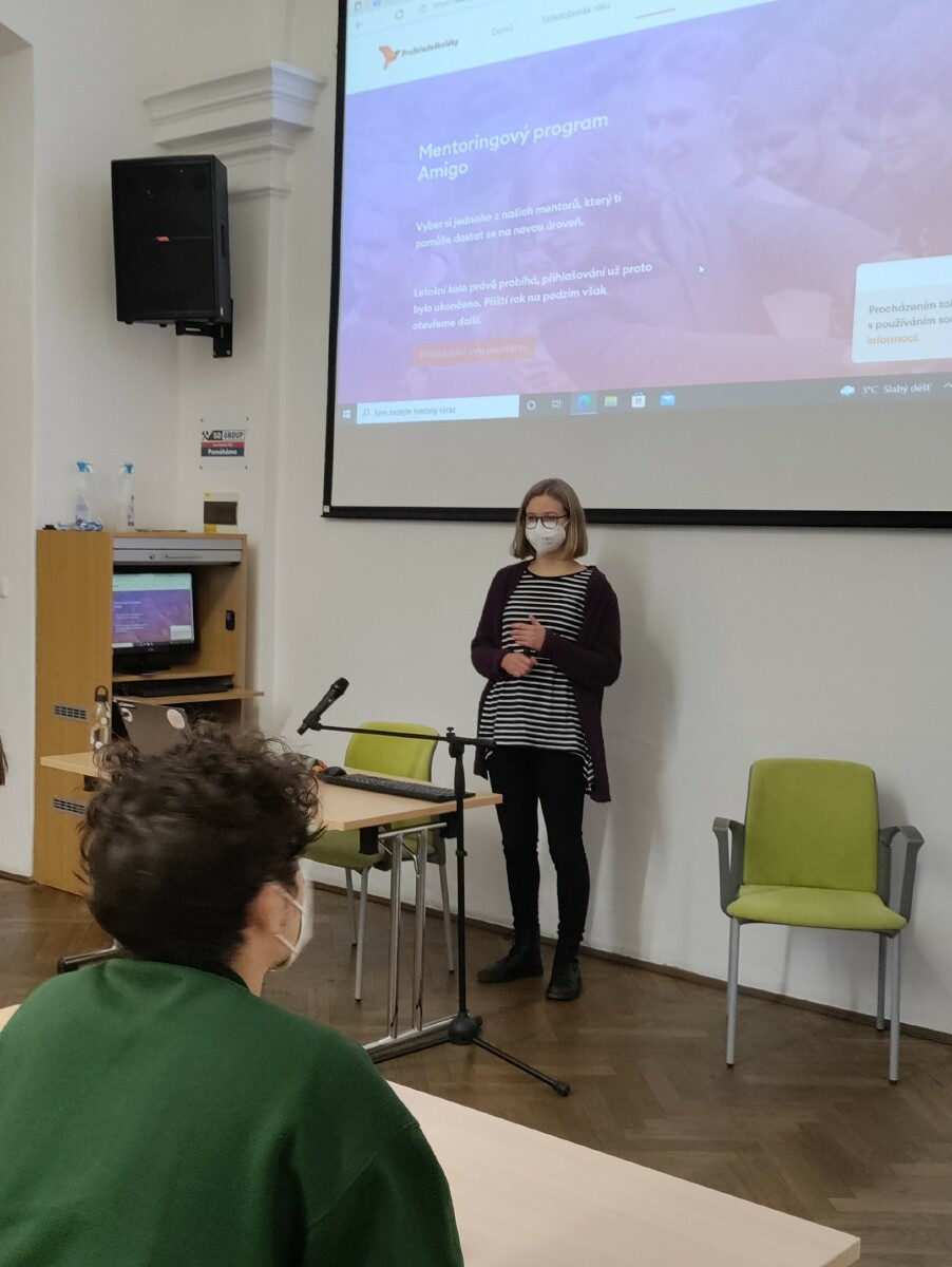 Ve čtvrtek na naší školu zavítala Maria Šimůnková, studentka Fakulty informatiky a statistiky Vysoké školy ekonomické v Praze. Připravila si tři různá témata. Nejdříve terciánům a kvartánům přiblížila projekt Nekrachni, který se věnuje podstatným základům finanční gramotnosti, včetně tipů na hledání letní brigády nebo bezpečnosti použití svého bankovního účtu.