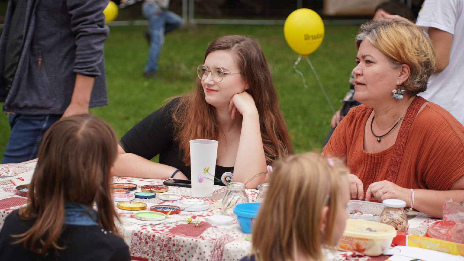 Odpoledne oslavy pokračovaly v prostorách školy. Program zahájily pozdravy současného i dřívějšího vedení školy a církevních představitelů. Vystoupily kapely AMORFAN a The Crushers, rodičům a absolventům byly nabídnuty prohlídky školy, výstava výtvarných prací studentů, nahlédnutí do odborných učeben, prezentace o absolventech nebo o programu UNESCO. Zájemci mohli navštívit také fotokoutek a malí návštěvníci dětský program včetně tvoření. Zpestření v podobě žlutých balónků se sloganem „silnější díky vztahům“ zajistil spolek absolventů Ursulus. Pro vzpomínku na uplynulá léta byly připraveny almanachy školy.