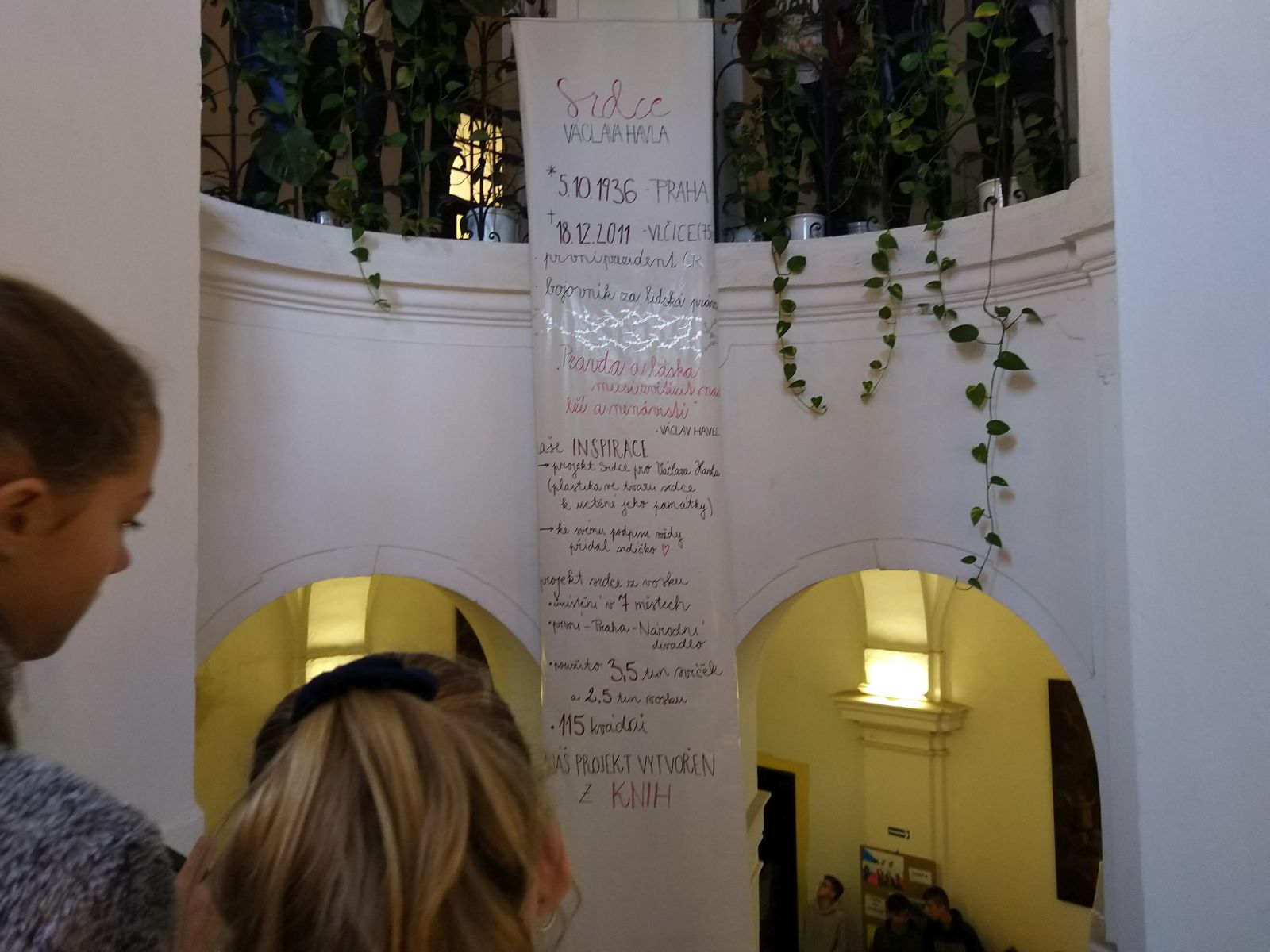 V prvním patře gymnázia jsou vystaveny plakáty oceněné v soutěži žáků kutnohorských středních škol o nejlepší plakát zvoucí na letošní oslavy 17. listopadu v ulicích Kutné Hory. Naši školu mezi nimi zastupuje práce Jana Švarze (kvinta). Kvintáni a sextáni se pokusili zobrazit svou představu „Co je to svoboda“ také pomocí slov, hesel či krátkých úvah, nebo ji znázornit i netradičními výtvarnými prostředky, například haptickými objekty se symboly předlistopadové doby. Žáci tercie a kvarty připravili několik souborů prací, které nazvali "Lípa vzpomínek", "Když zvonily klíče" nebo "Touha po svobodě", sextáni se zaměřili spíše na prostorové instalace v prostorách školy, jednou z nich je "Srdce pro Václava Havla" v přízemí. Na 20. listopad je pak pro kvartu a oktávu připraven badatelský workshop, vedený p. Bohumilem Melicharem (ÚSTR) na téma konfrontace s původními historickými prameny a způsoby jejich interpretace.