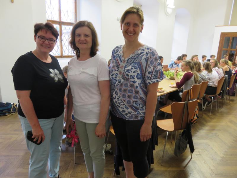 Gleich am Montagmorgen starteten wir mit einem von den Schülern organisierten gemeinsamen Frühstück in der Schulaula. Der gemeinsame Unterricht bestand diesmal aus einer Musik-Doppelstunde in Englisch, dem Üben von Gesprächssituationen in Deutsch in gemischten Gruppen (Wegbeschreibungen, die mit dem aktuellen Stand des Deutschunterrichts korrespondierten) und dem gemeinsamen Erlernen einer Ballade in tschechischer Sprache. Viel Spaß gab es auch beim wechselseitigen Nachsprechen von Zungenbrechern in Deutsch und Tschechisch.