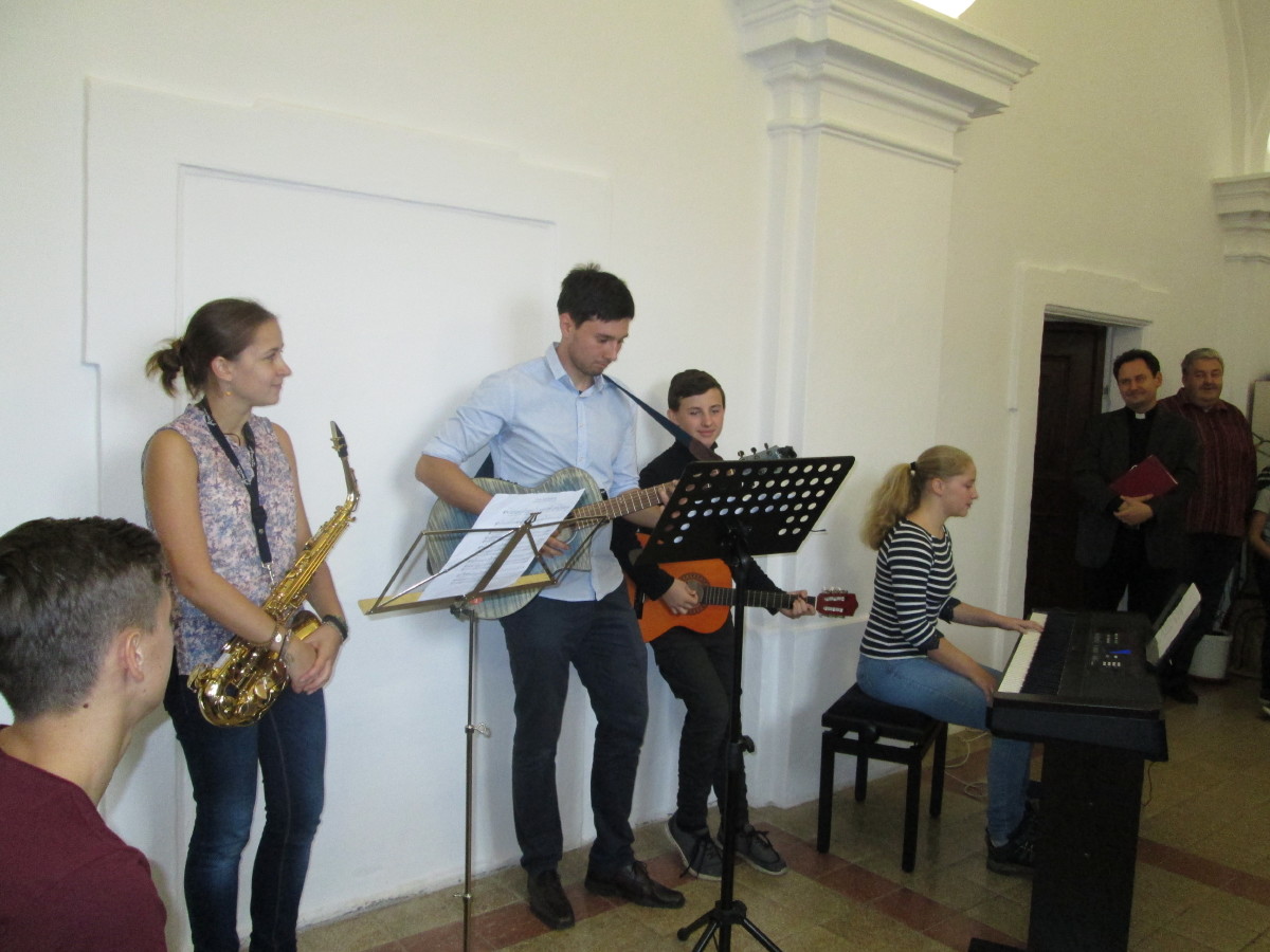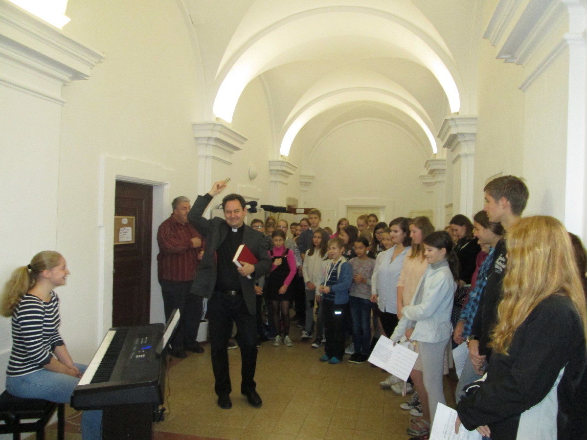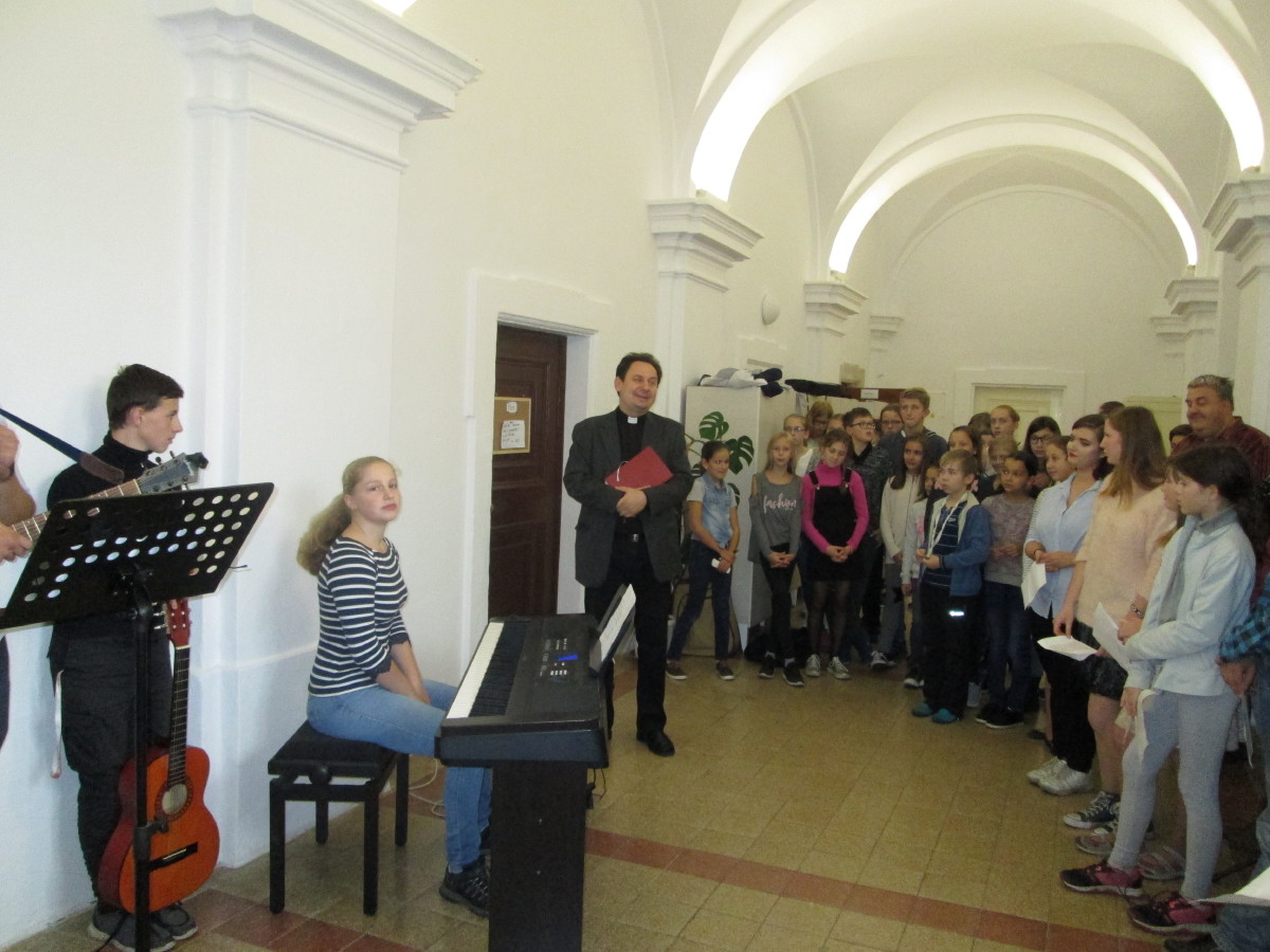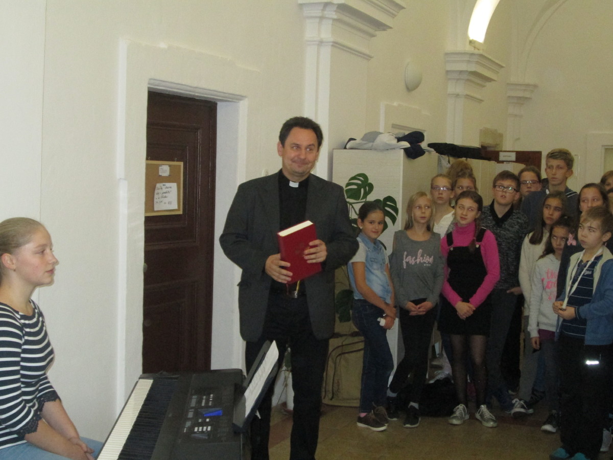 Dvě učebny a kabinet, o které se v letošním školním roce rozšířily vyučovací prostory školy, přišel posvětit kutnohorský arciděkan Jan Uhlíř. Hudební doprovod zajistila Schola.