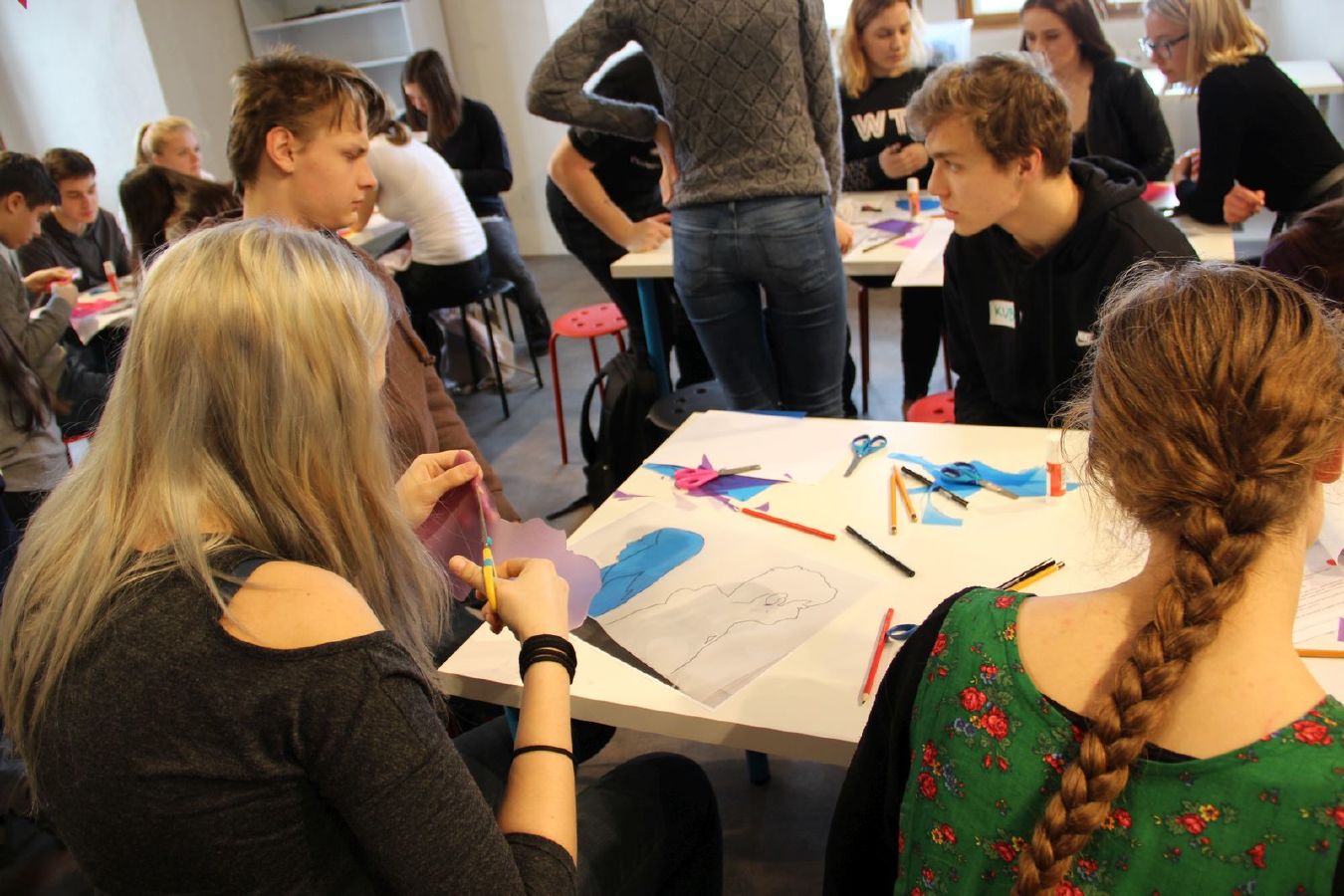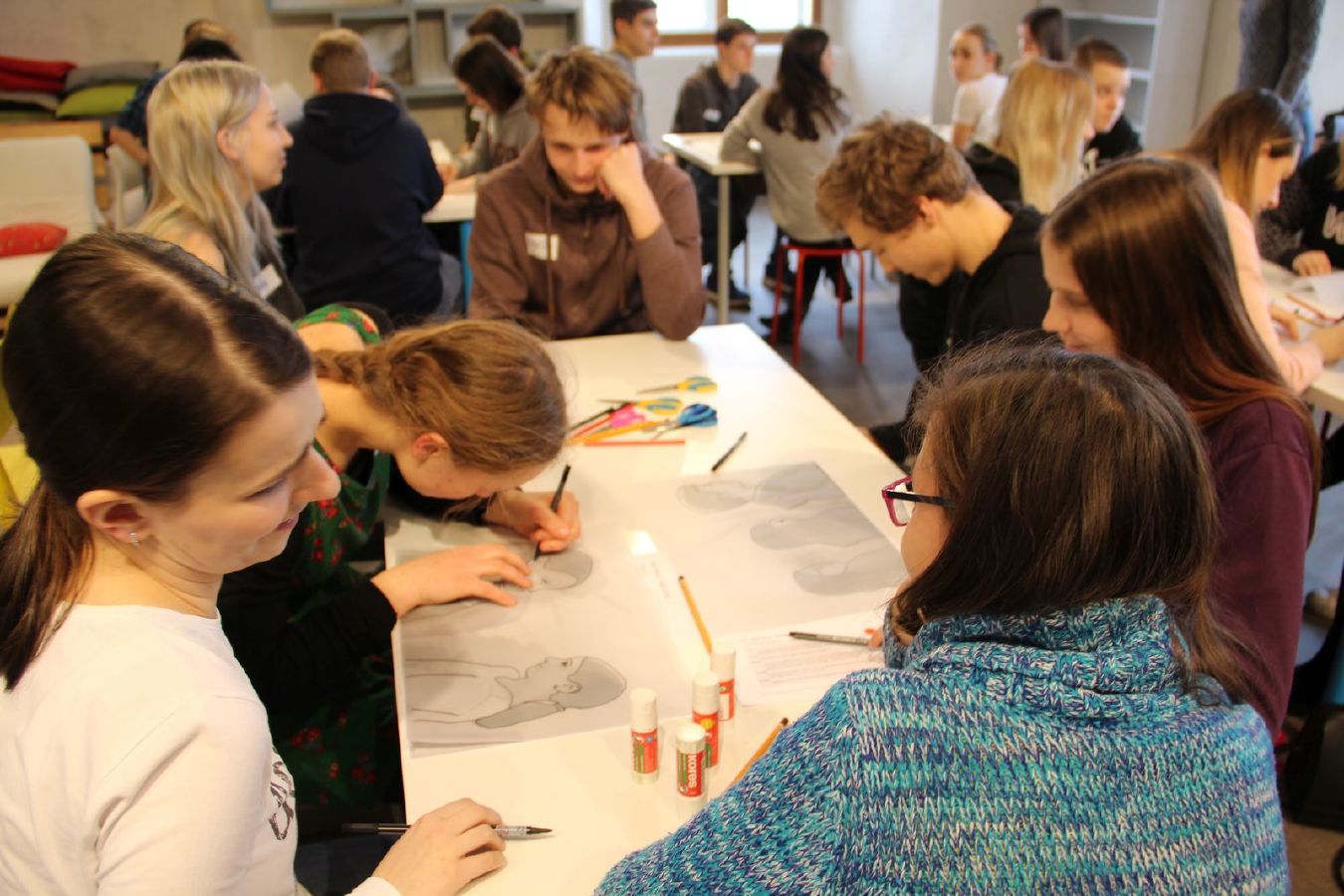 Spolupráce výtvarníků ze sexty našeho gymnázia a gymnázia v Mladé Boleslavi probíhala po celé první pololetí. Žáci se navzájem poznávali prostřednictvím výtvarných děl. V únoru přijeli gymnazisté do Kutné Hory a navštívili workshop v GASKu. Projekt bude pokračovat i v dalším školním roce.