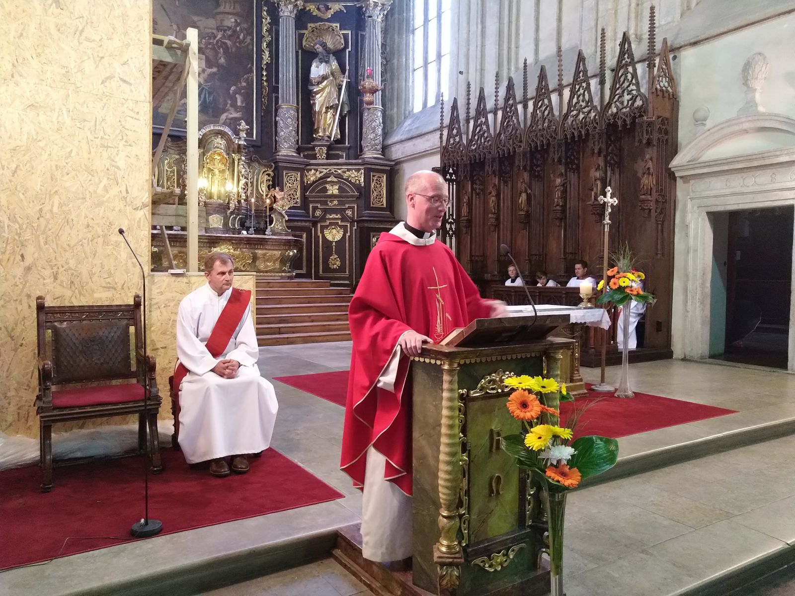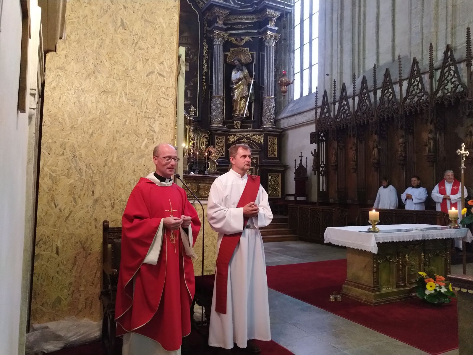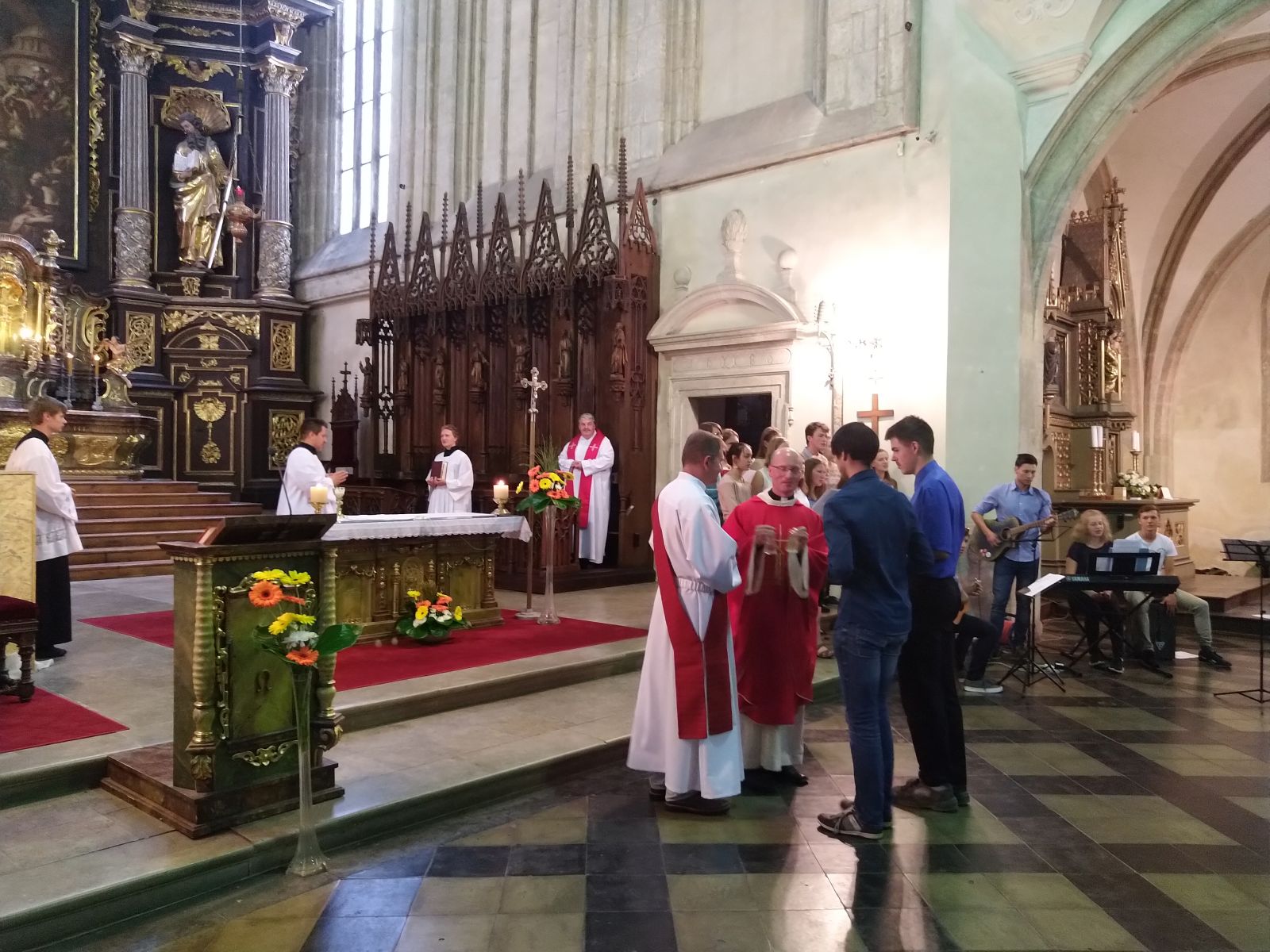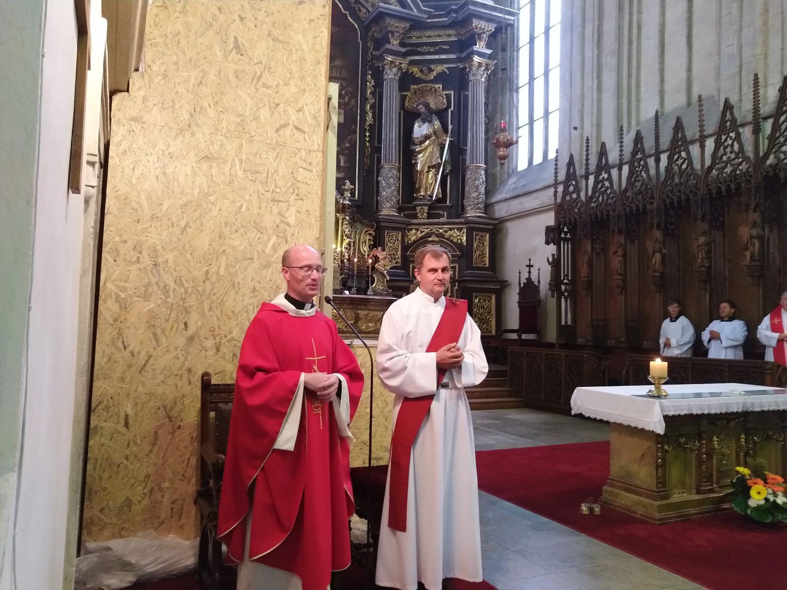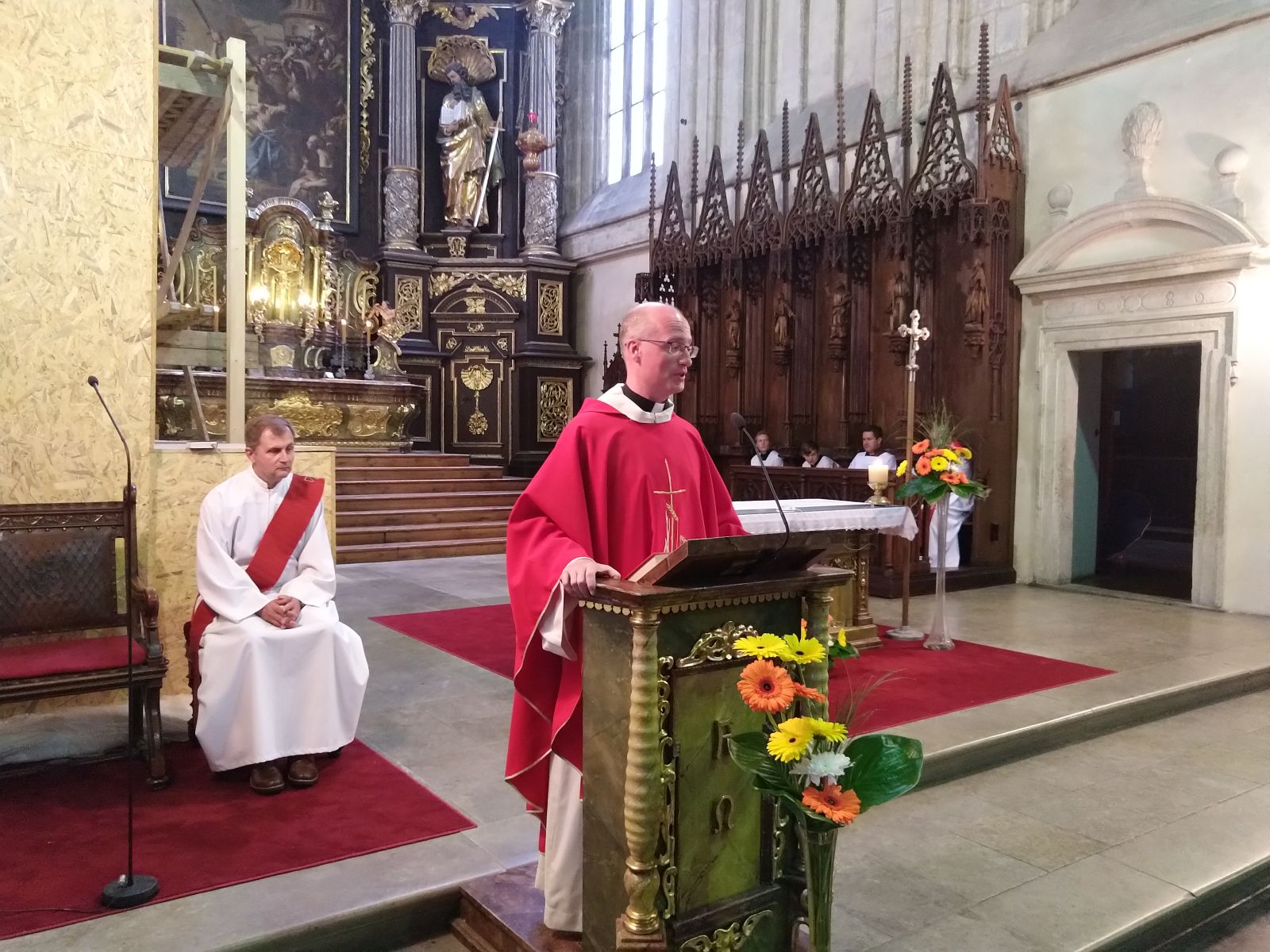 V kostele svatého Jakuba se jako každoročně sešli všichni studenti i učitelé, aby zahájili další školní rok mší svatou. Tu celebroval biskupský vikář pro školství ThLic. Prokop Brož, který byl v letech 1998 - 2001 spirituálem na našem gymnáziu.