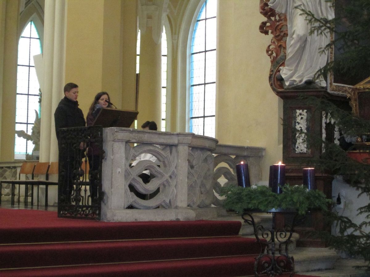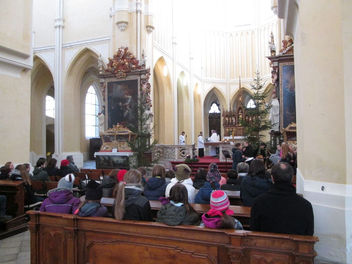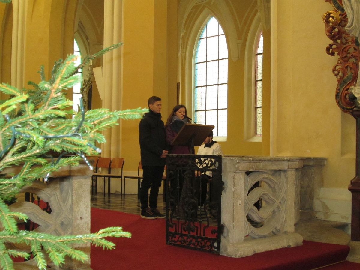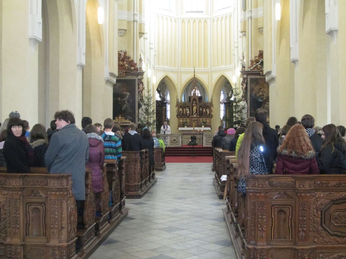 Tradiční předvánoční školní mši, jíž se účastní všichni učitelé, zaměstnanci i studenti školy, celebroval spirituál školy a vikář sedlecké farnosti Pavel Tobek.
