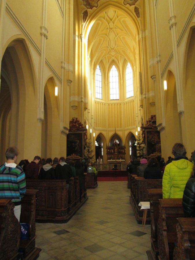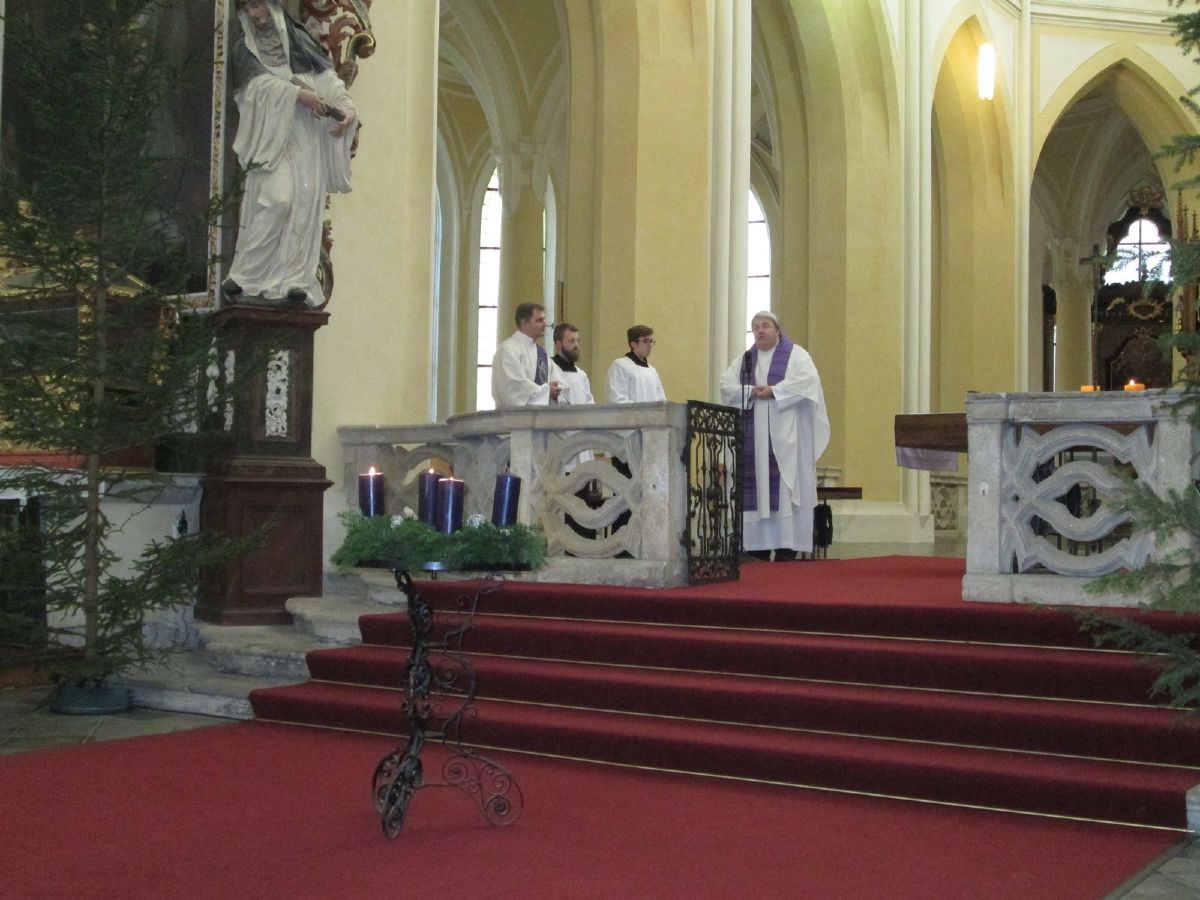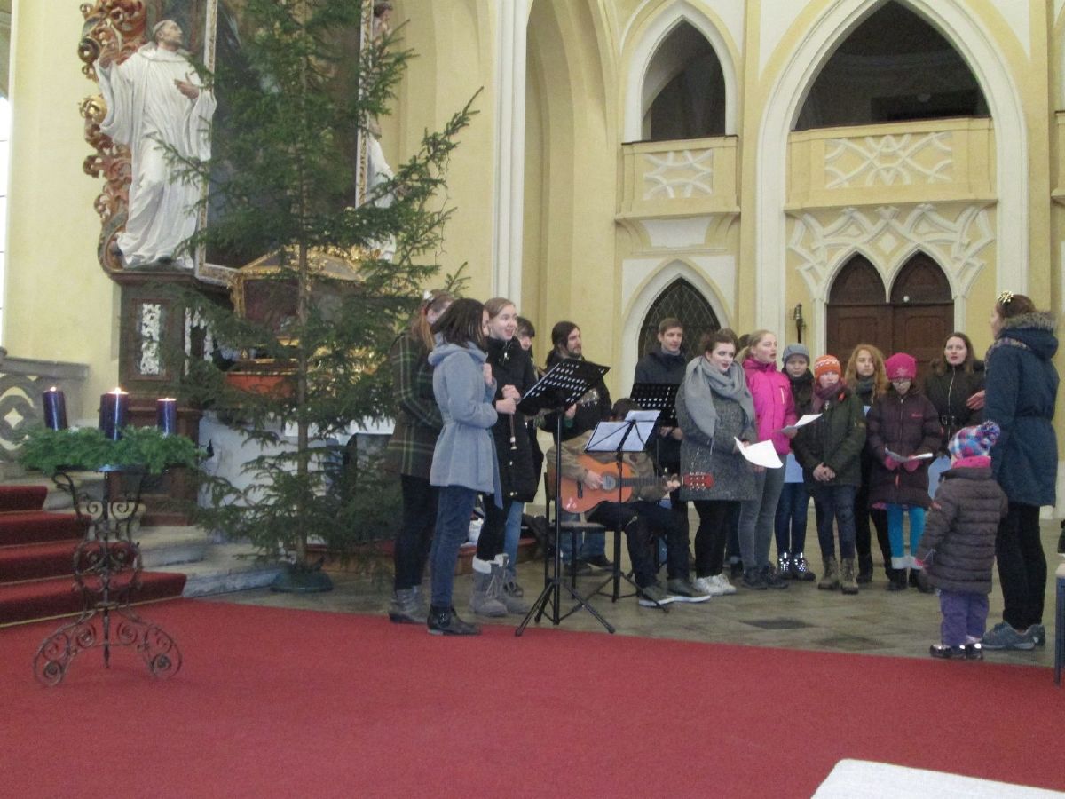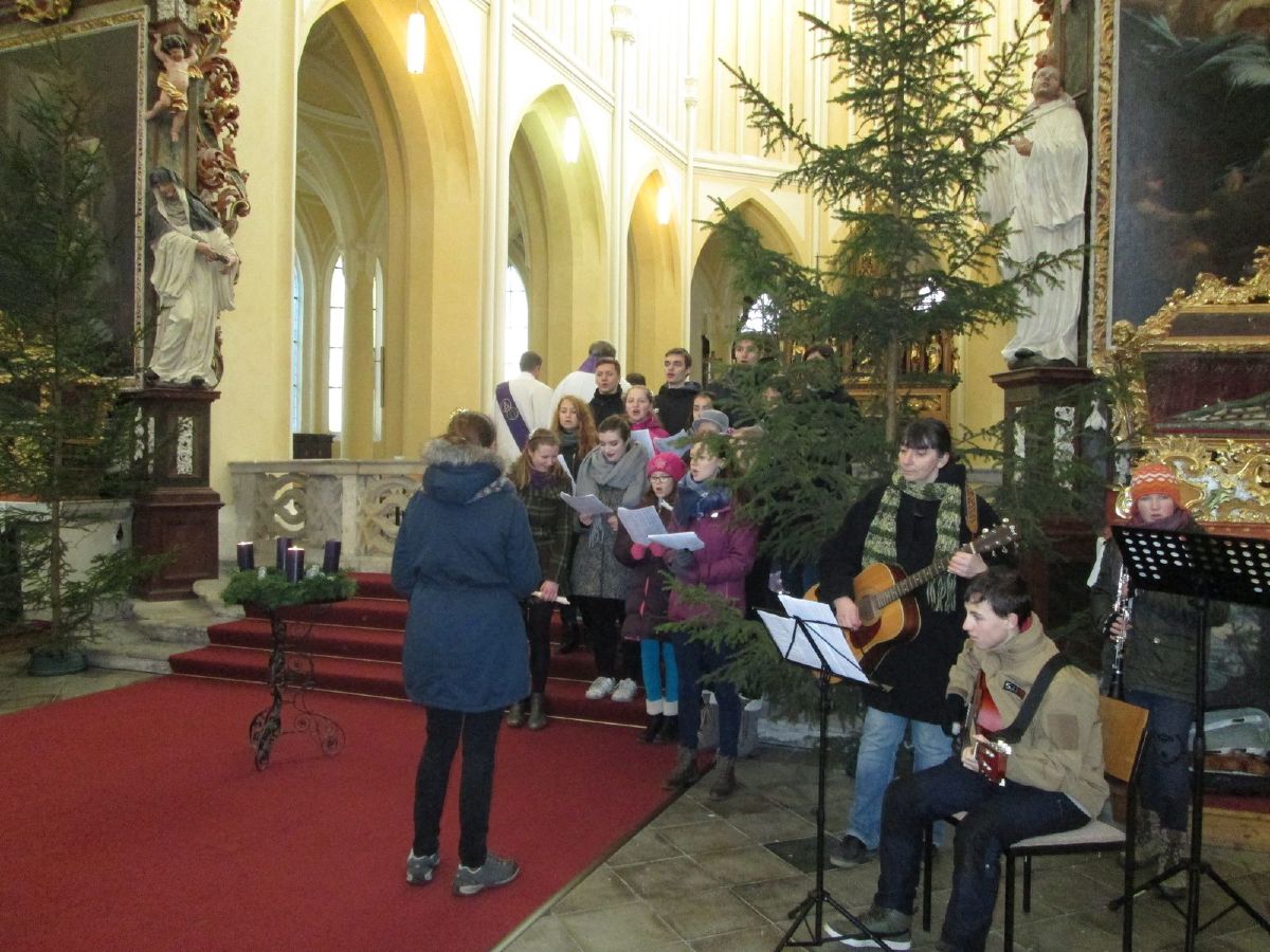 Tradiční předvánoční školní mši, jíž se účastní všichni učitelé, zaměstnanci i studenti školy, celebroval spirituál školy a vikář sedlecké farnosti Pavel Tobek.