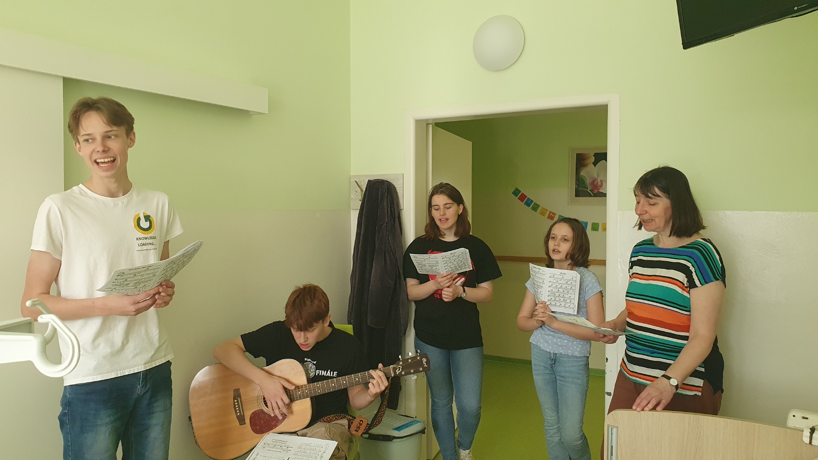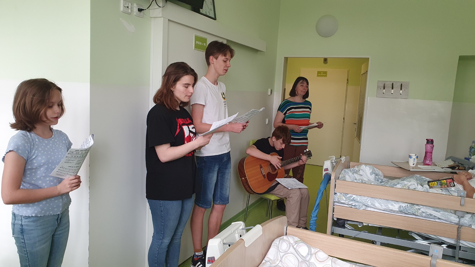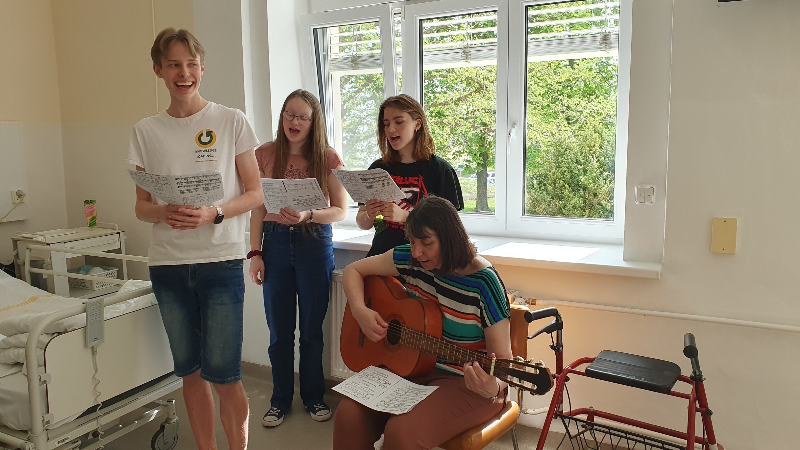 V pátek 12.4. jsme zpívali a hráli pacientům LDN a paliativního oddělení kutnohorské nemocnice. Pro nás a hlavně pro ně to bylo setkání veskrze pozitivní, plné dobré nálady a sluníčka. Doufáme, že jsme aspoň na chvíli pomohli lépe snášet jejich těžkou situaci.